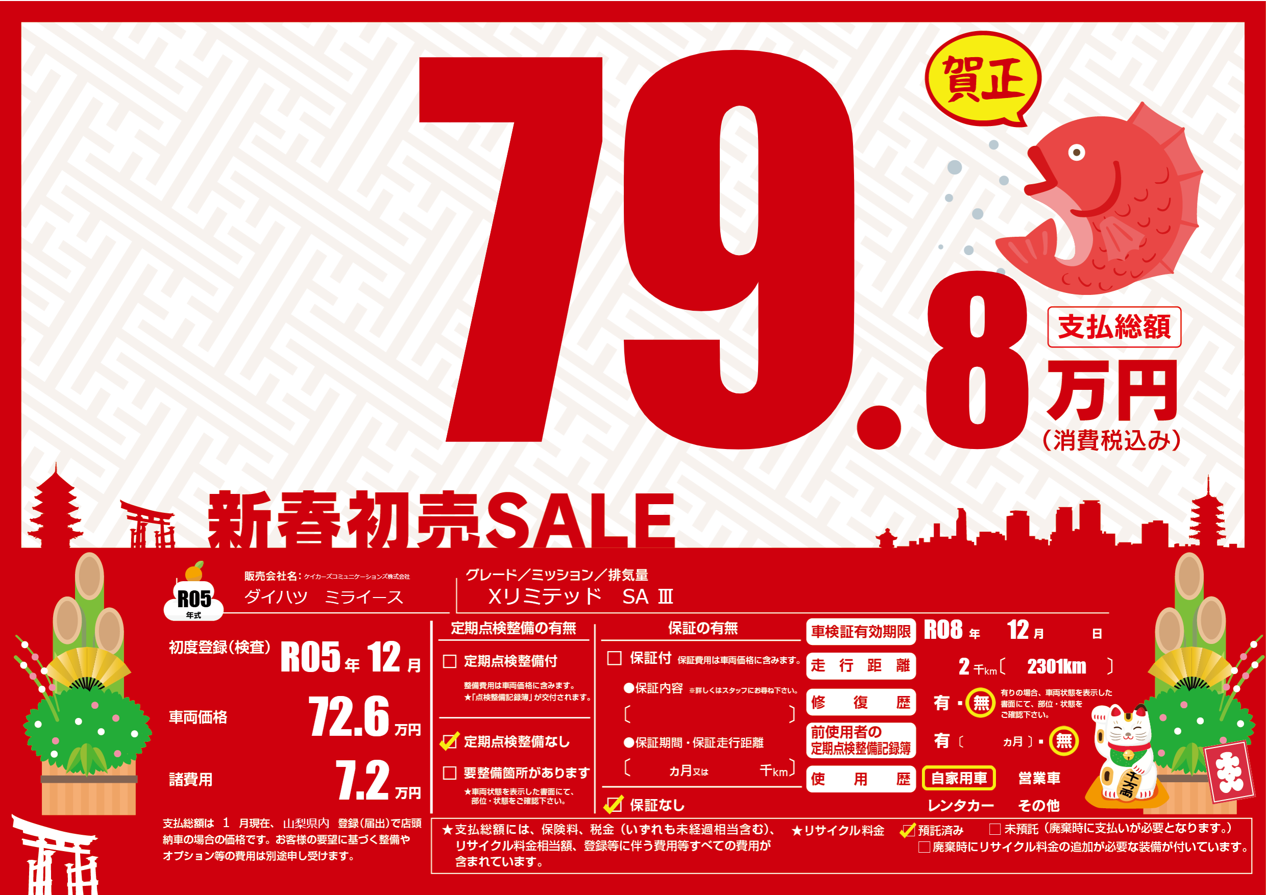 | 走行キロ | 0.2万km | 初年度登録 | R05年12月 |