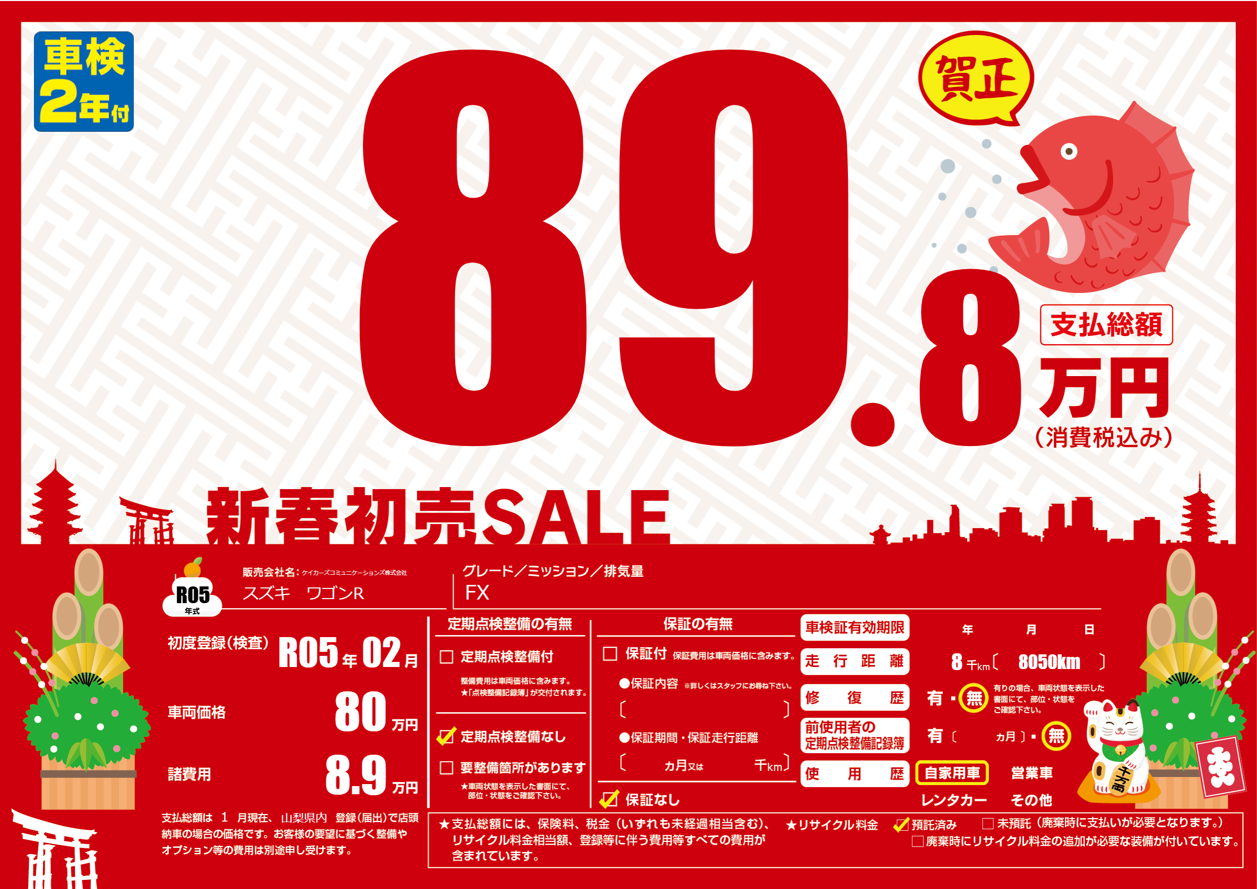 | 走行キロ | 0.8万km | 初年度登録 | R05年02月 |