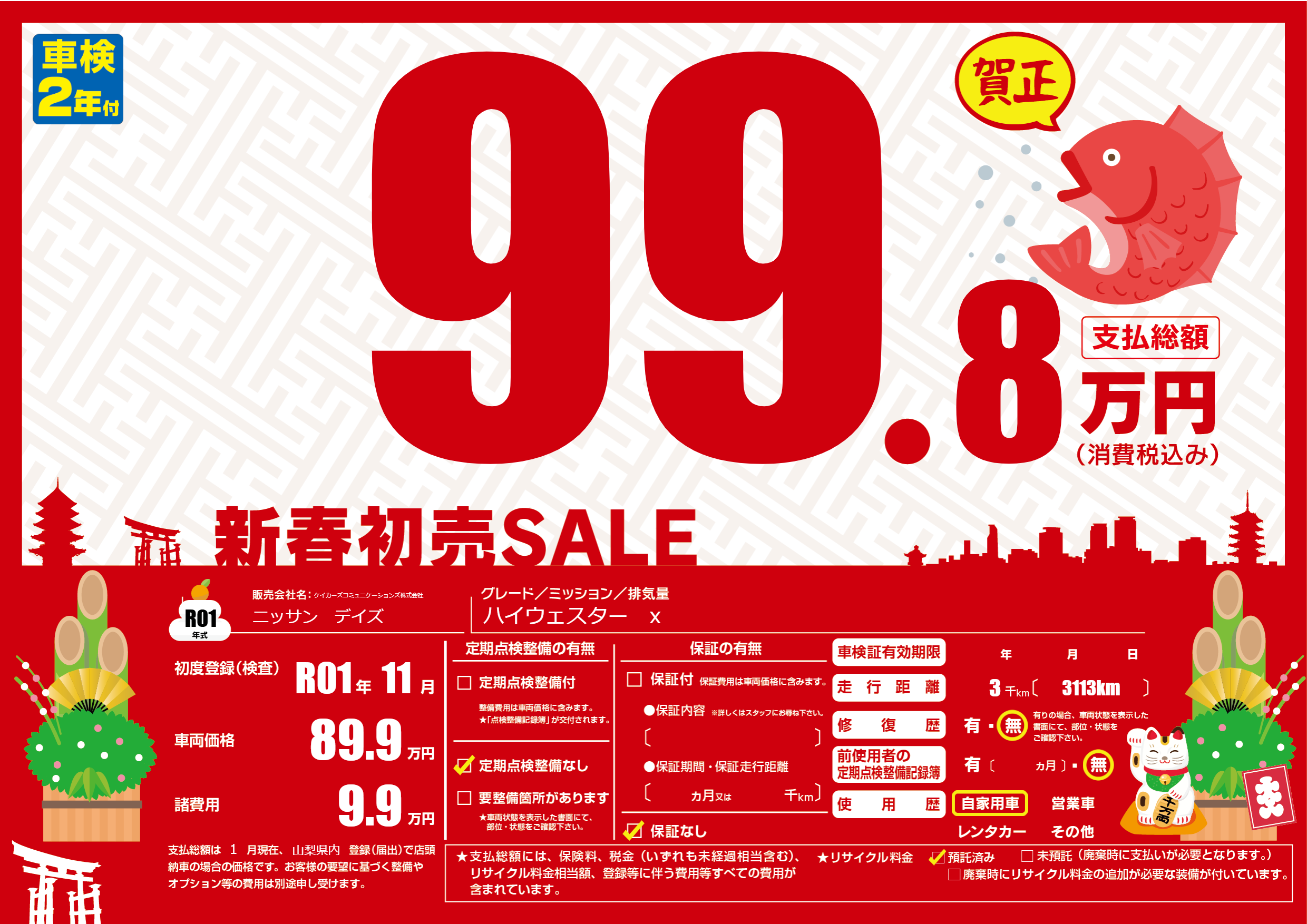 | 車検制限 | - 年 - 月 - 日 | ||