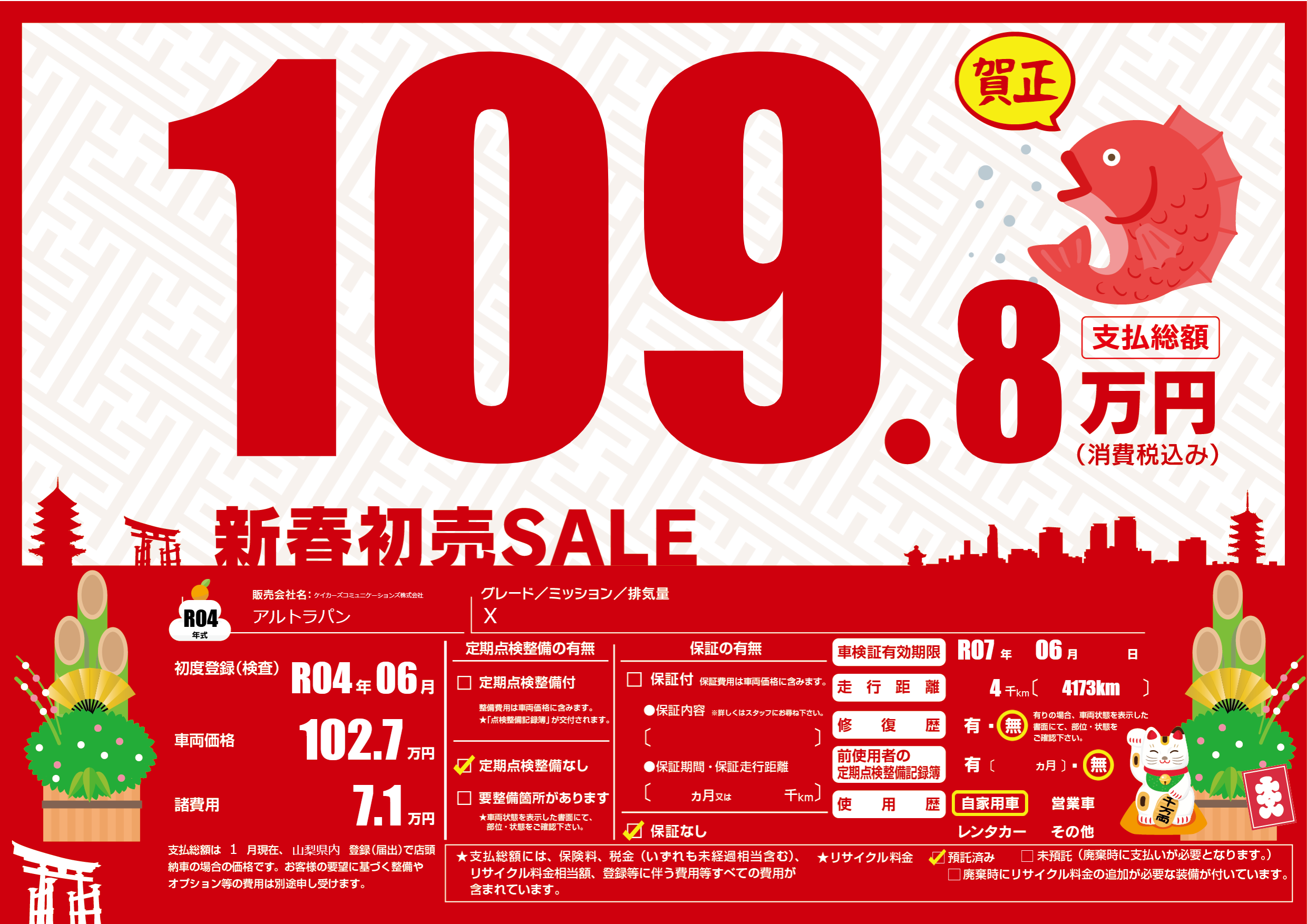 | 走行キロ | 0.4万km | 初年度登録 | R04年06月 |