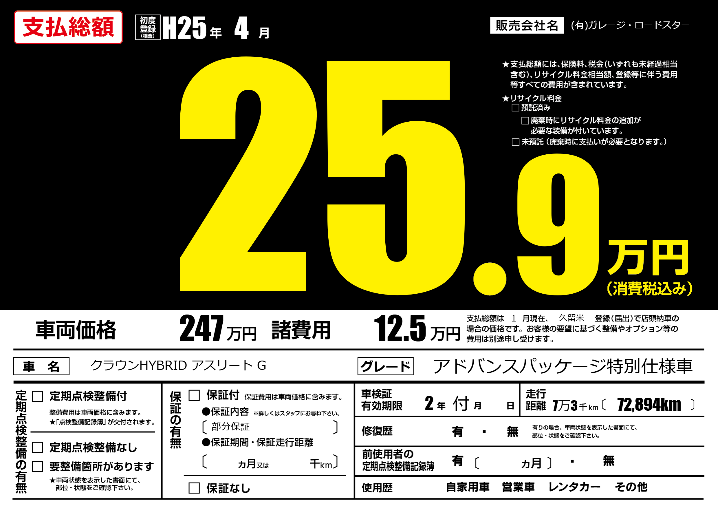 | 初年度登録 | H25年4月 | ||