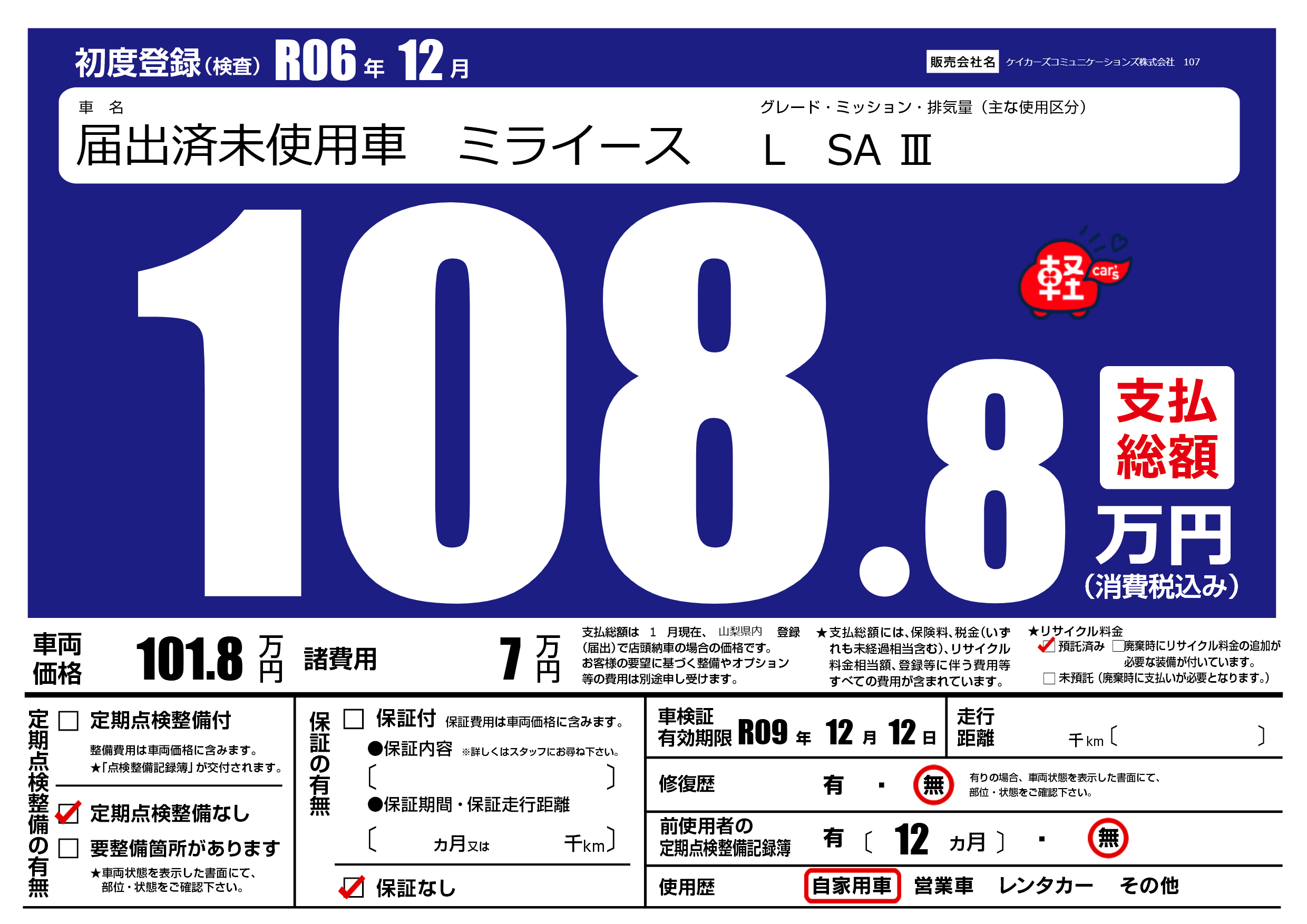 なし | 車検制限 | R09年12月12月 |