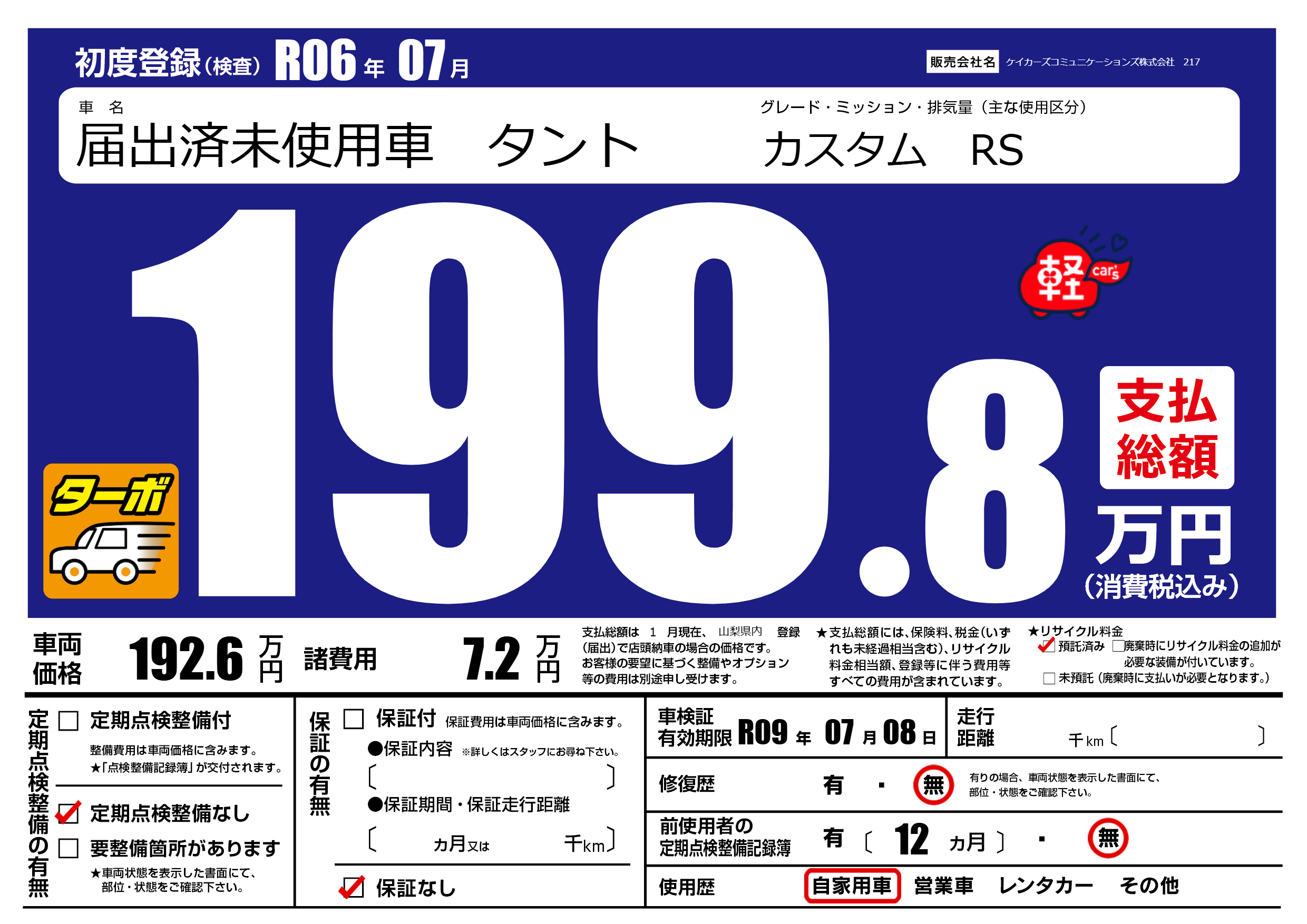 なし | 車検制限 | R09年07月08月 |