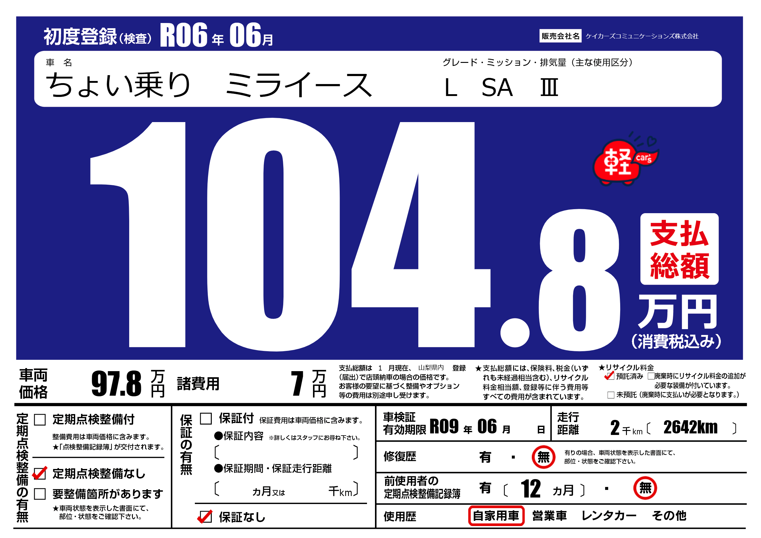 なし | 車検制限 | R09年06月---月 |