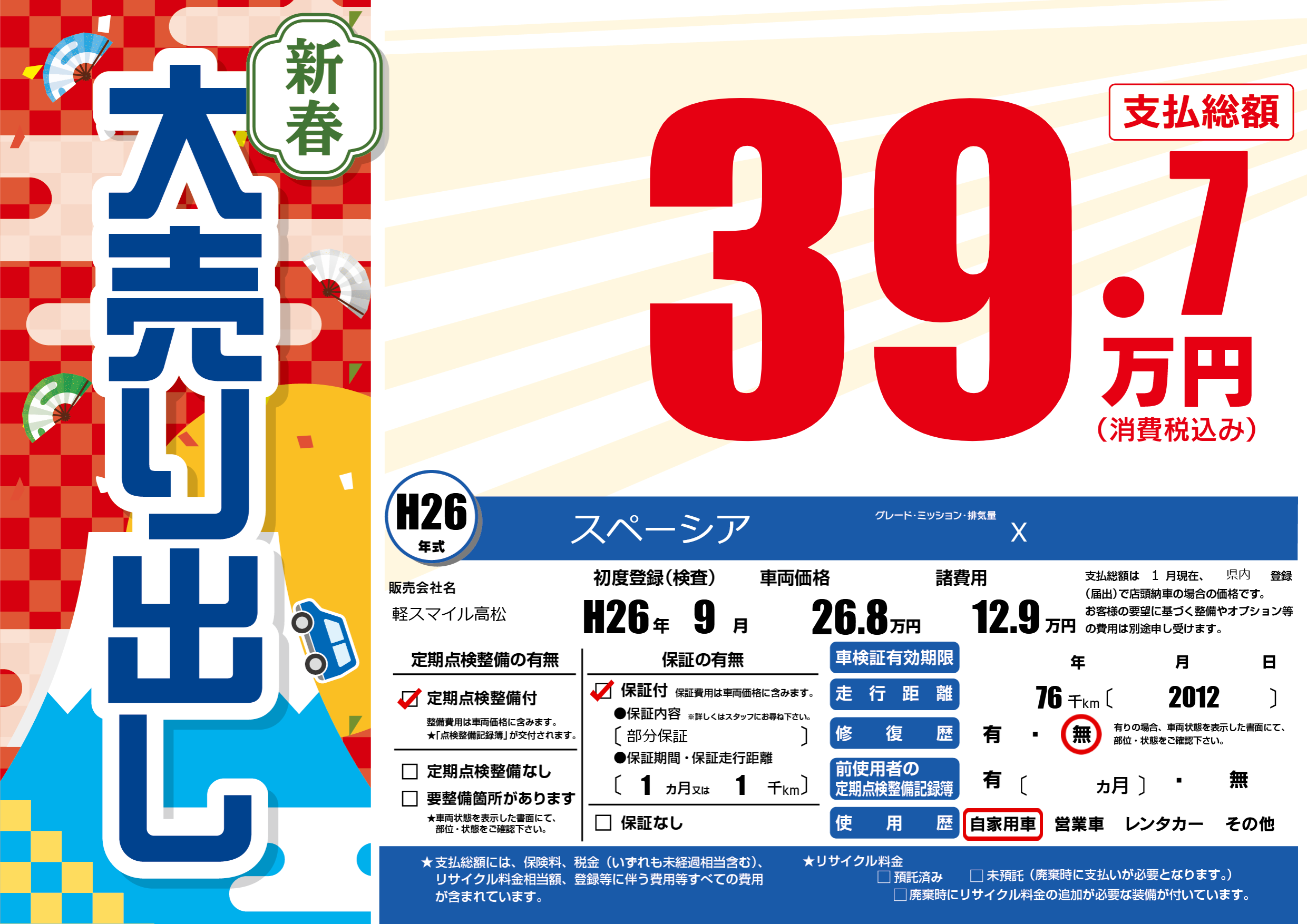 | 初年度登録 | H26年9月 | ||