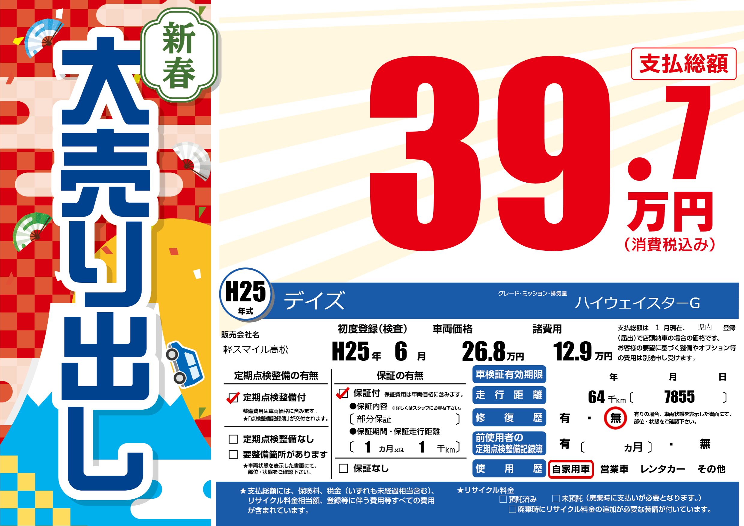 | 走行キロ | 6.4万km | 初年度登録 | H25年6月 |