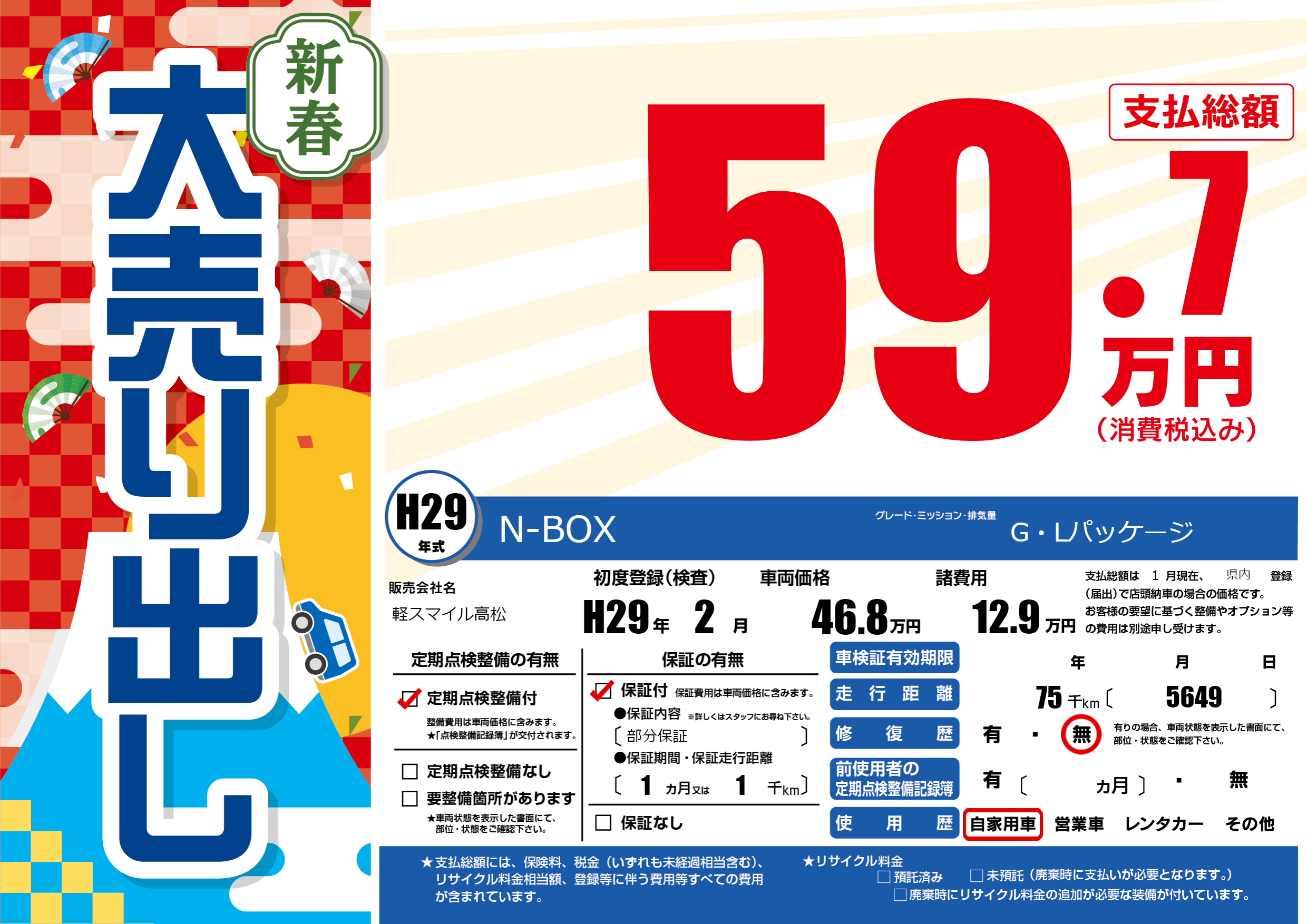 | 車名 | N-BOX | グレード ミッション 排気量 |