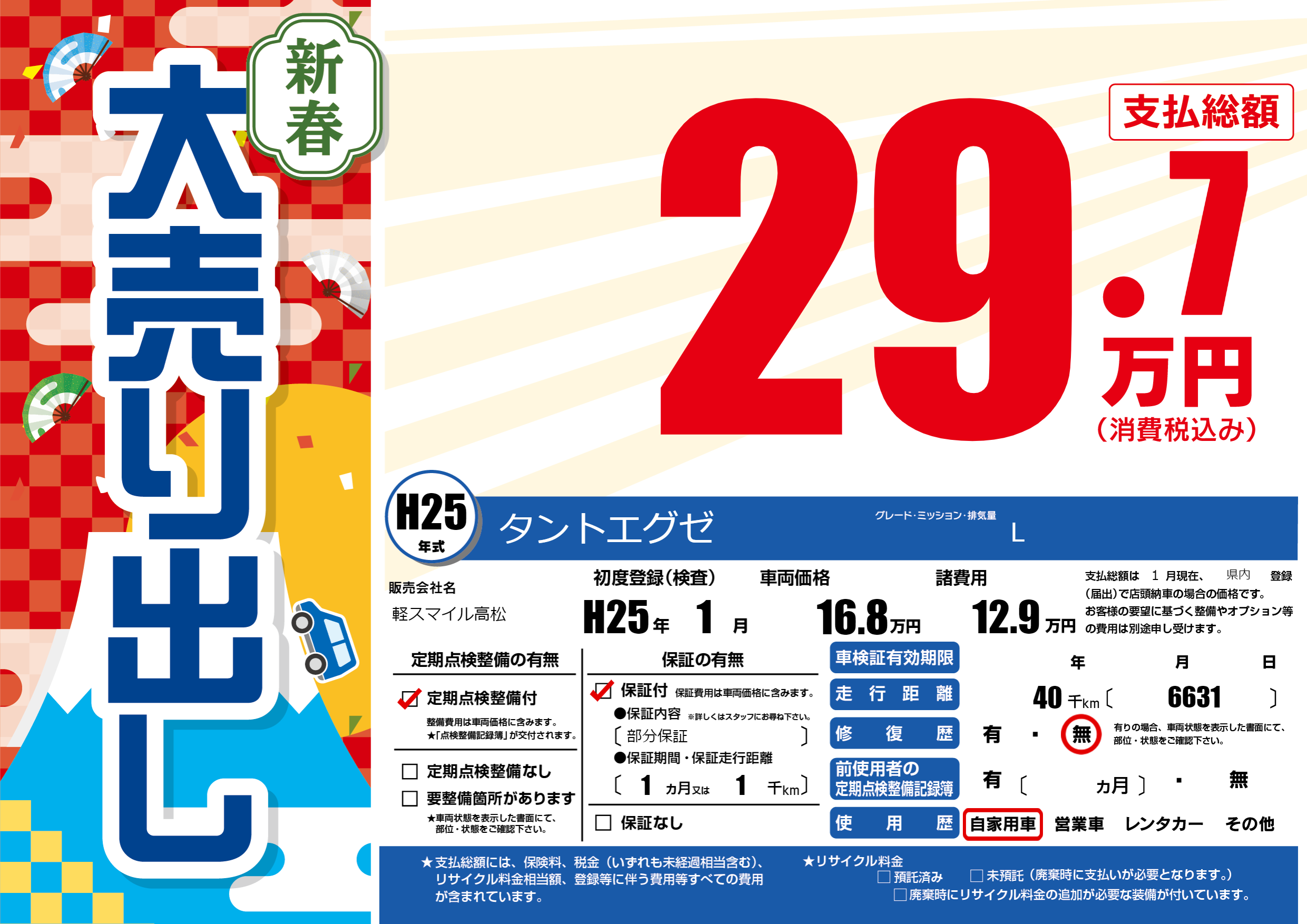 | 走行キロ | 4万km | 初年度登録 | H25年1月 |