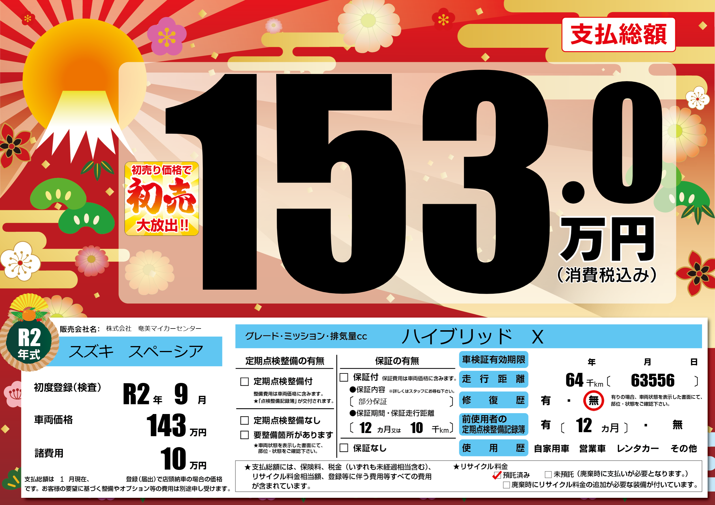 | 走行キロ | 6.4万km | 初年度登録 | R2年9月 |