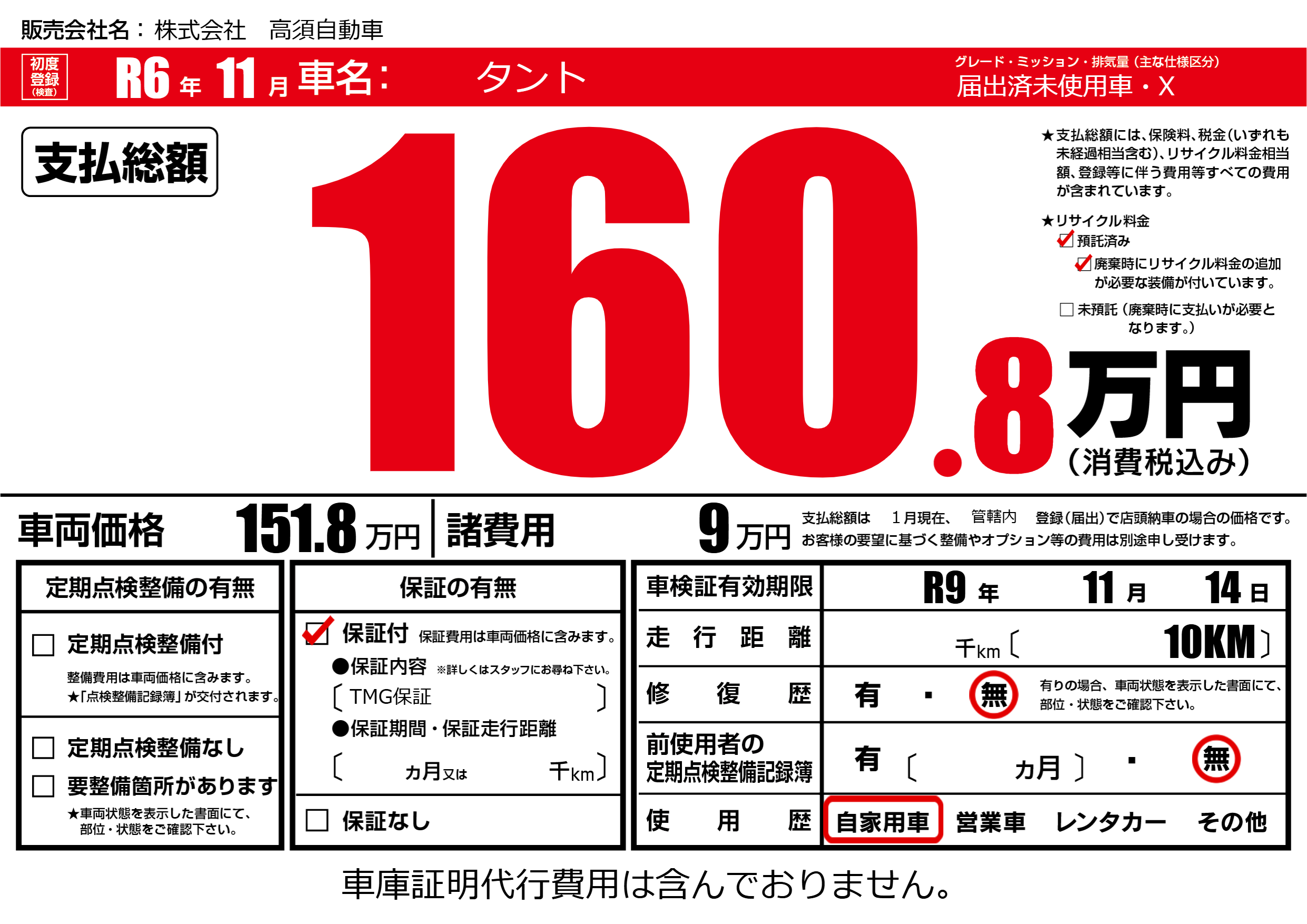 保証付き 保証内容(TMG保証) ---ヶ月または()千kmまで |