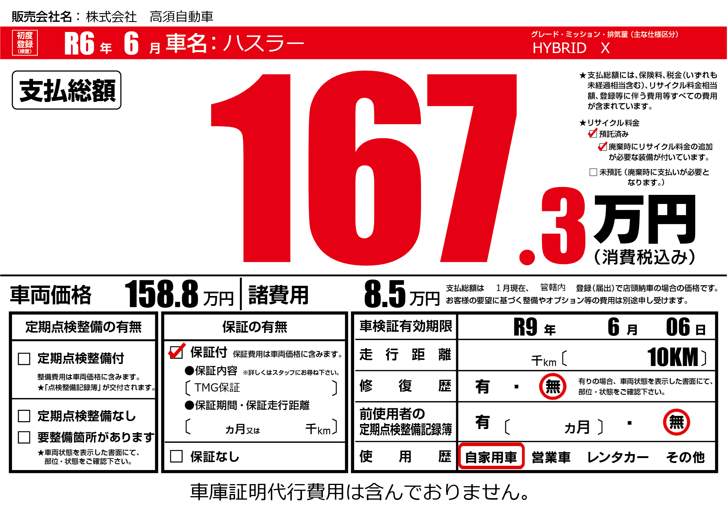 | 車名 | ハスラー | グレード ミッション 排気量 |