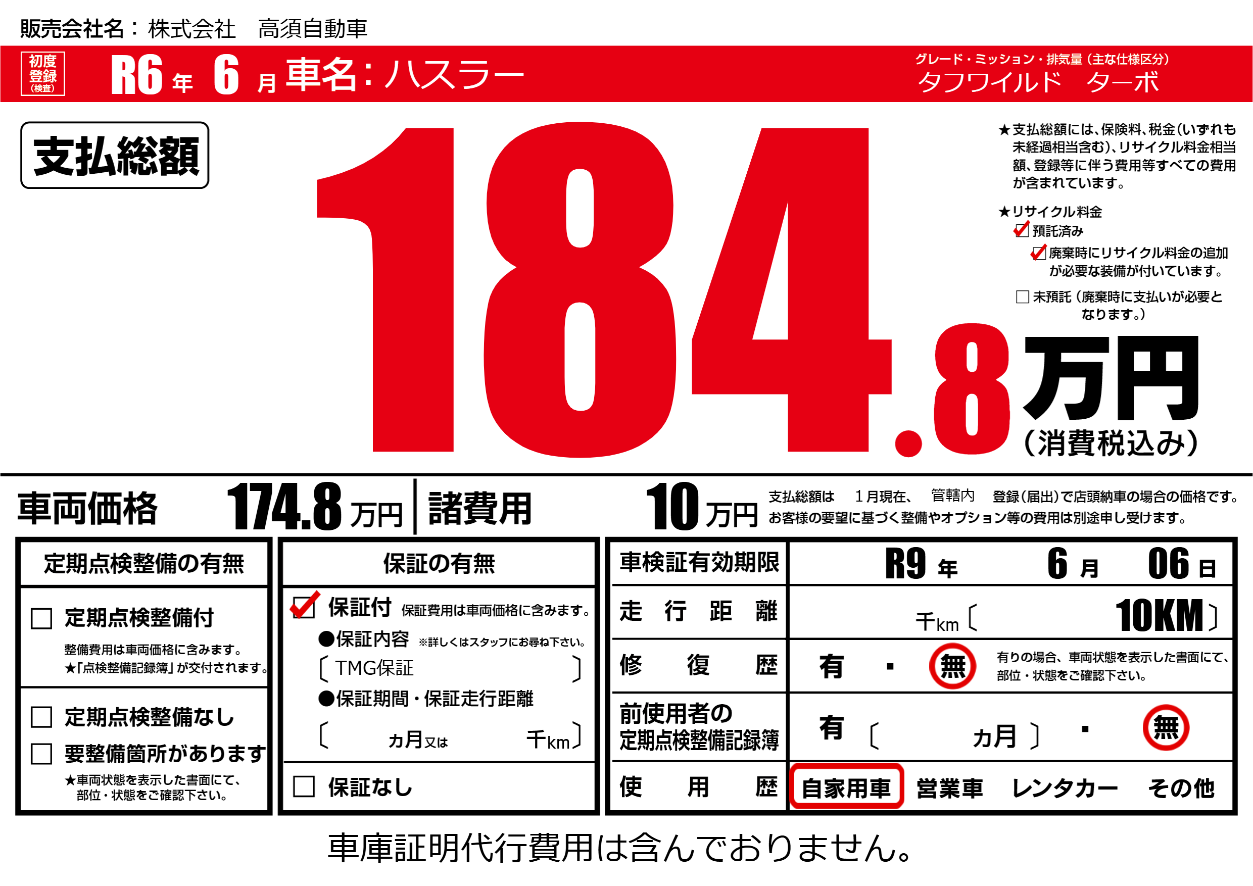 保証付き 保証内容(TMG保証) ---ヶ月または()千kmまで |