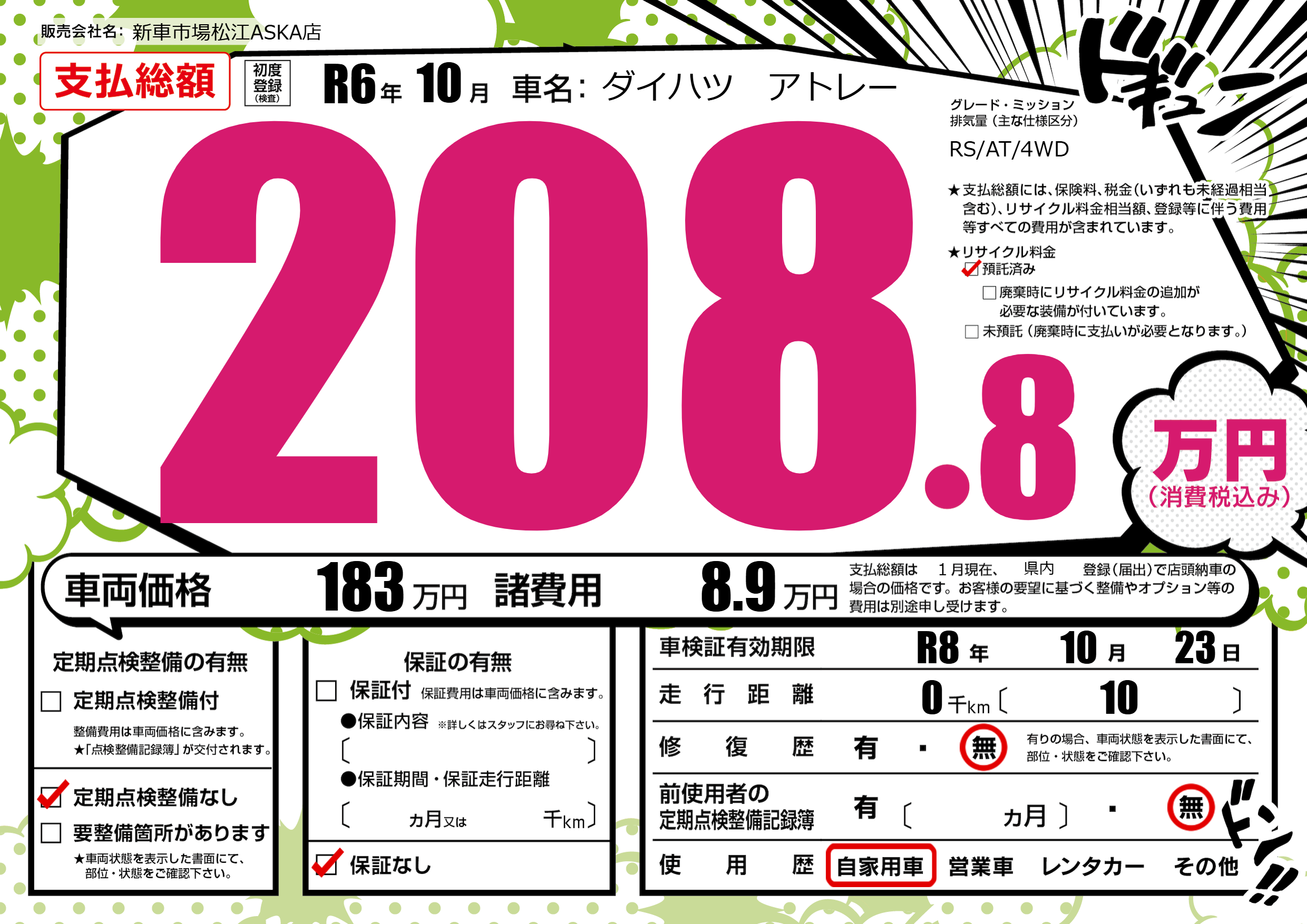 | 走行キロ | - | 初年度登録 | R6年10月 |