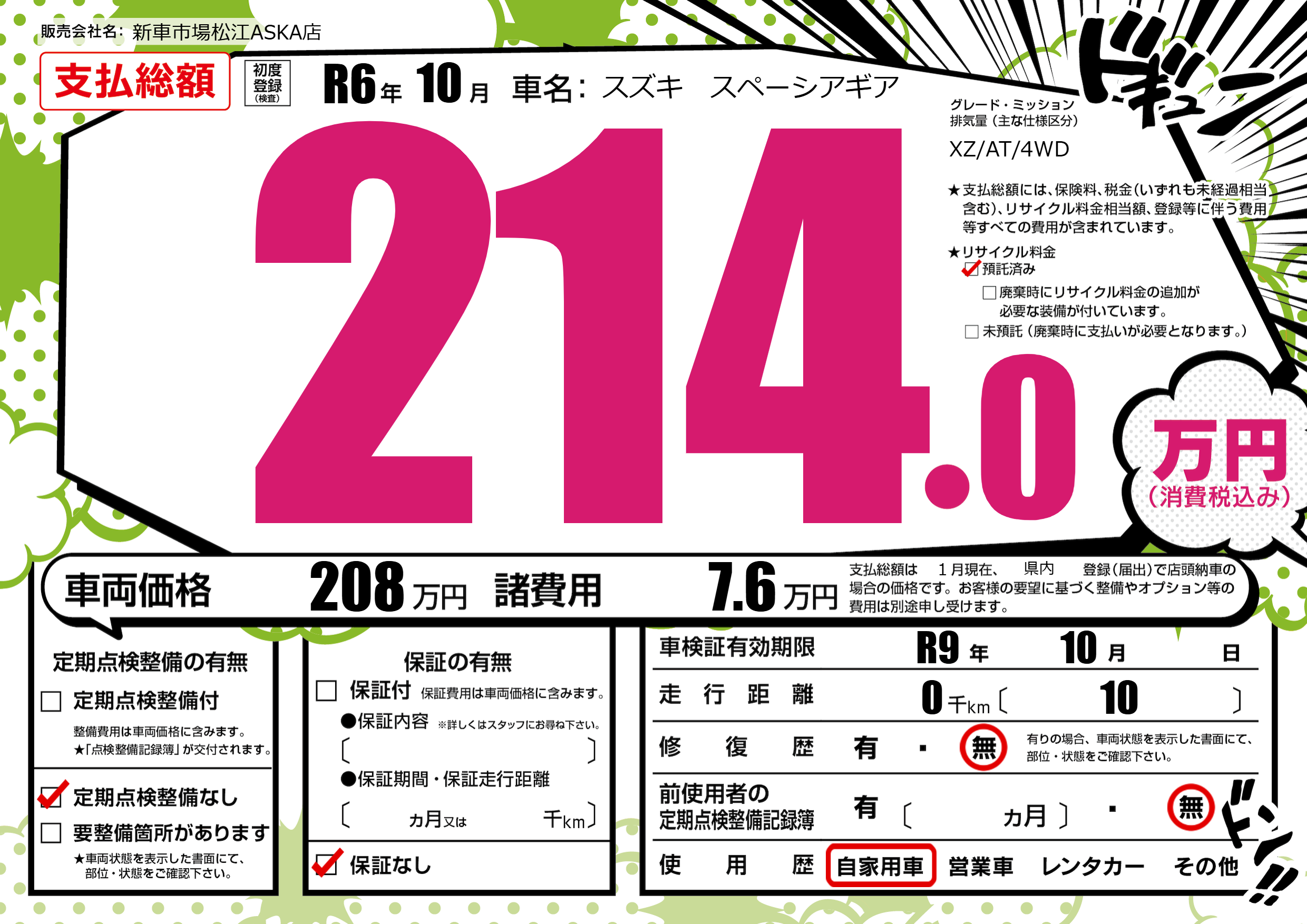 | 走行キロ | - | 初年度登録 | R6年10月 |