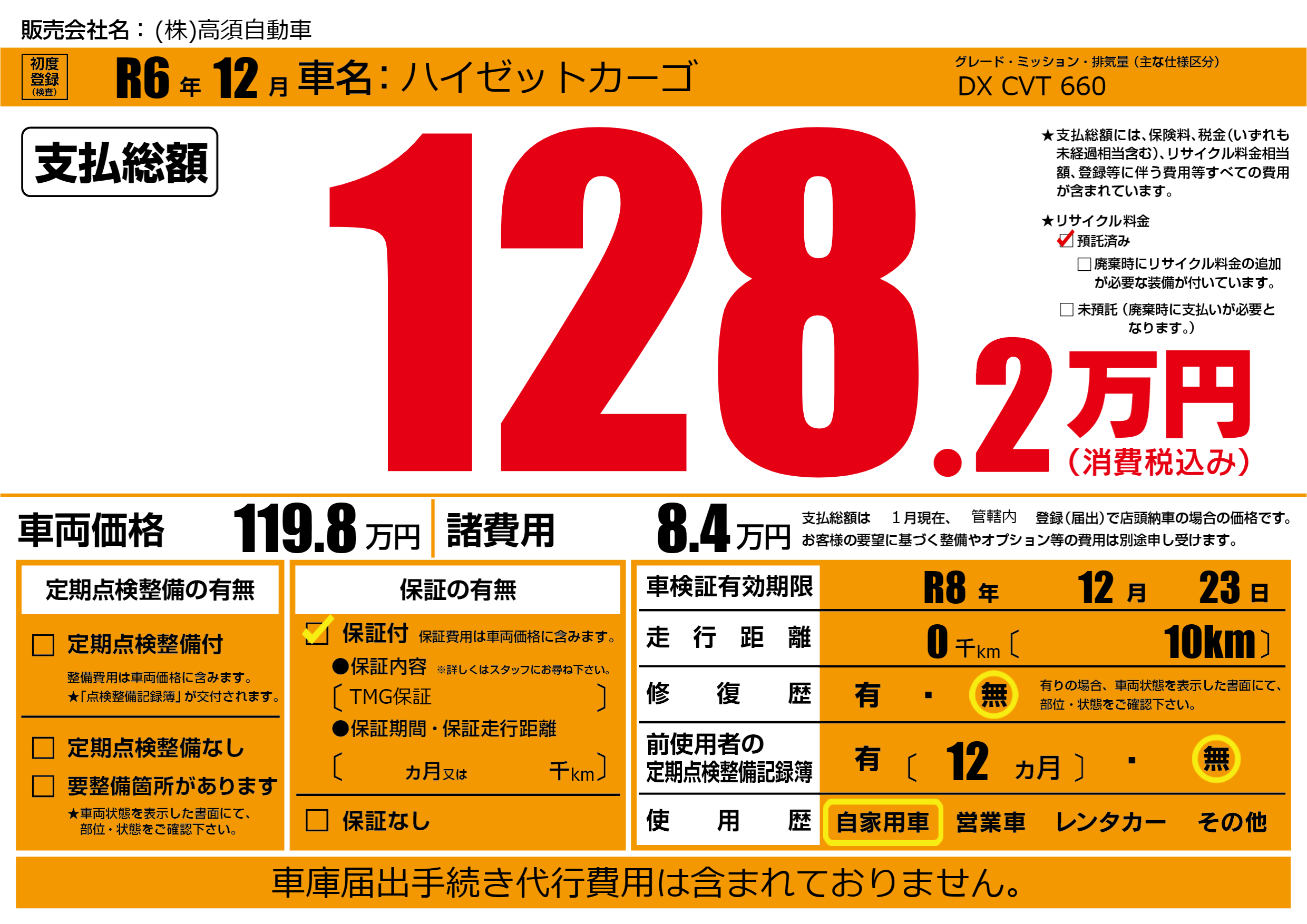 保証付き 保証内容(TMG保証) ---ヶ月または()千kmまで |