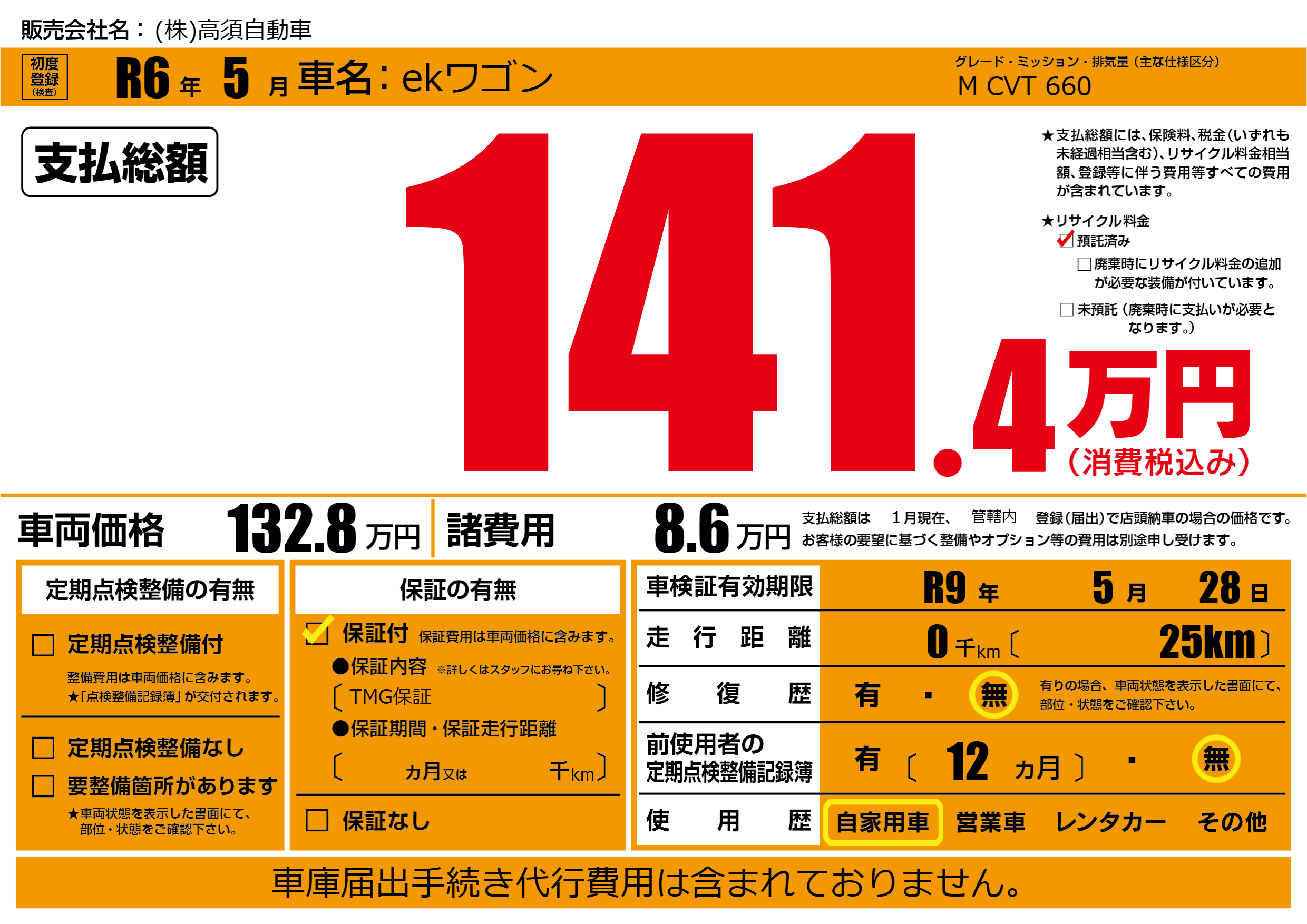 | 走行キロ | - | 初年度登録 | R6年5月 |