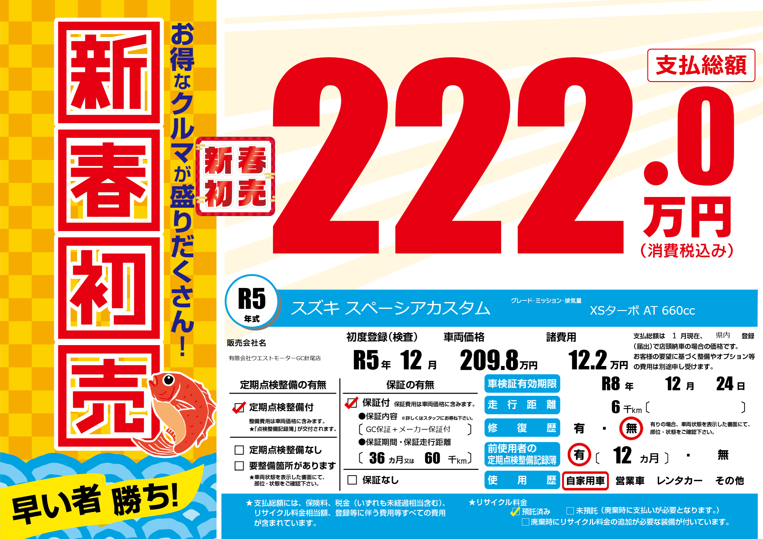 | 走行キロ | 0.6万km | 初年度登録 | R5年12月 |