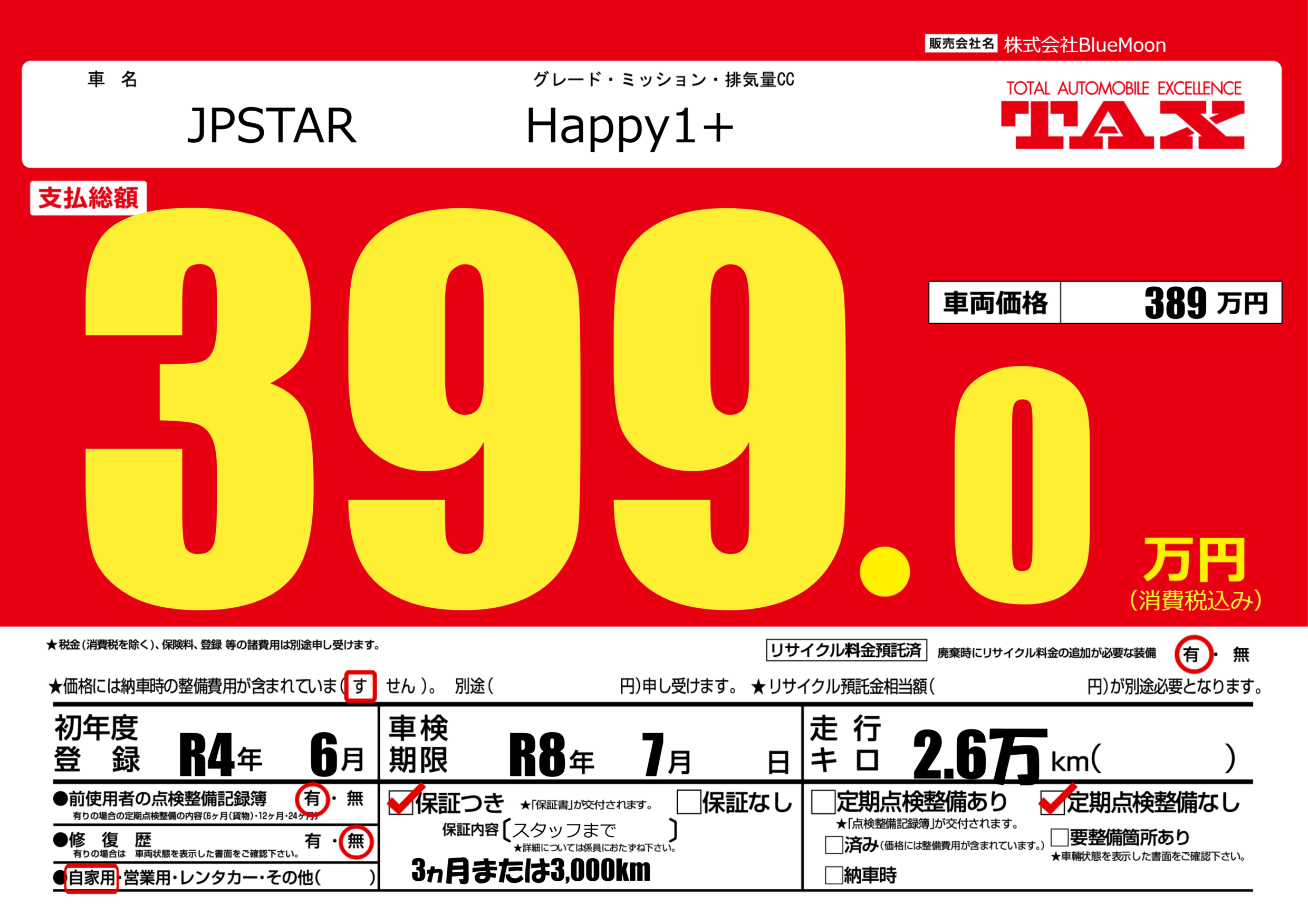 | 車名 | JPSTAR | グレード ミッション 排気量 |