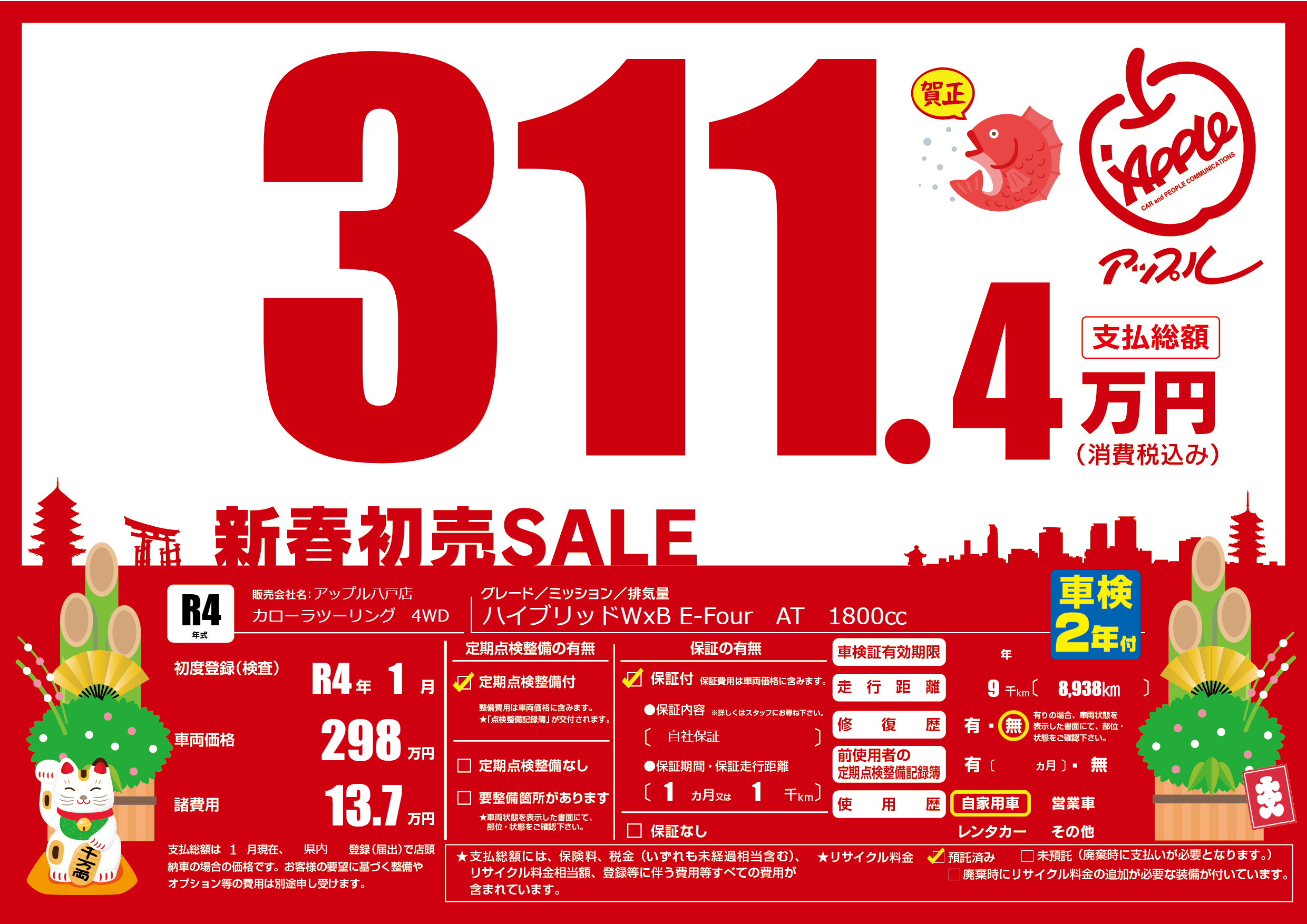 | 走行キロ | 0.9万km | 初年度登録 | R4年1月 |