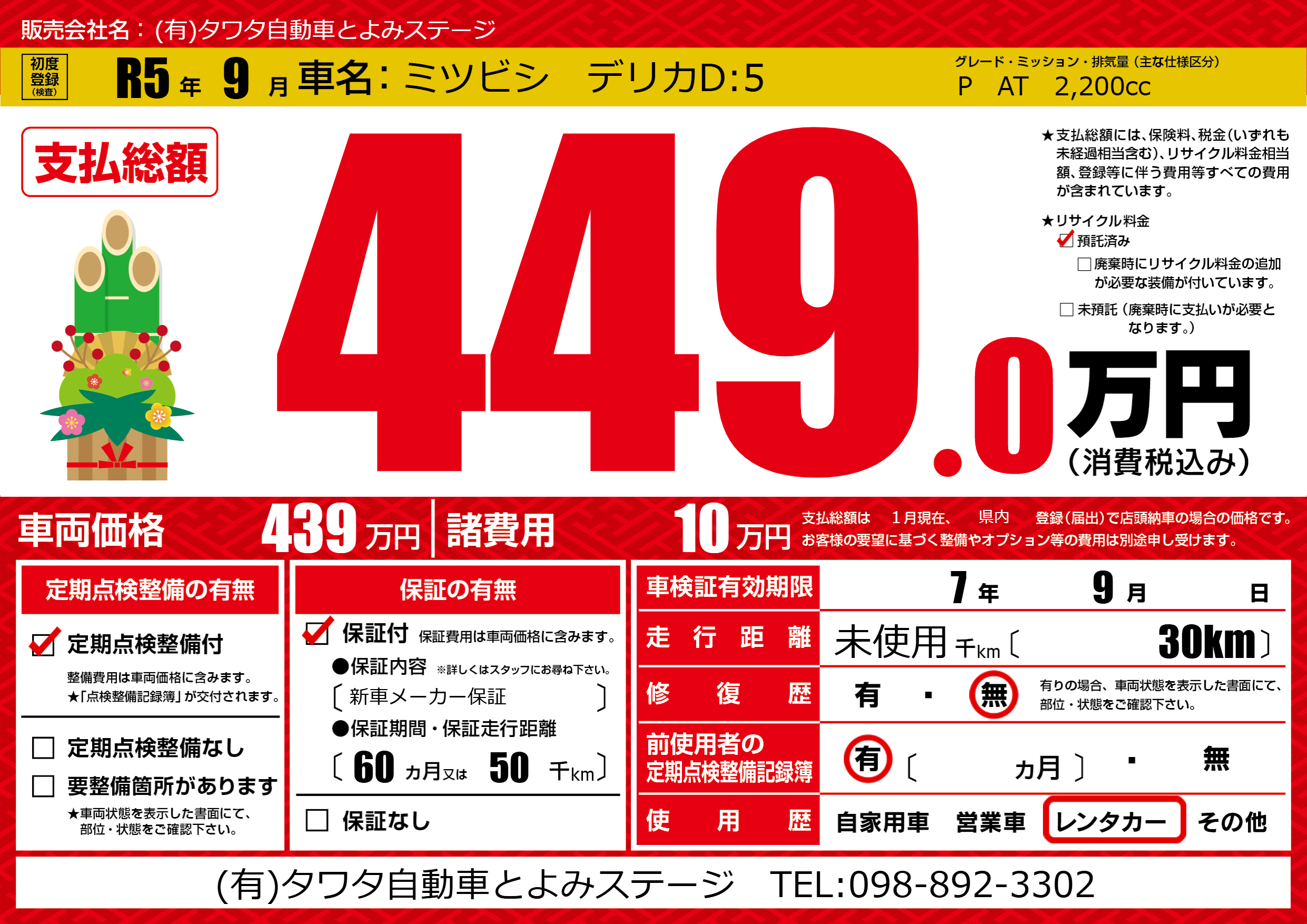 | 走行キロ | - | 初年度登録 | R5年9月 |