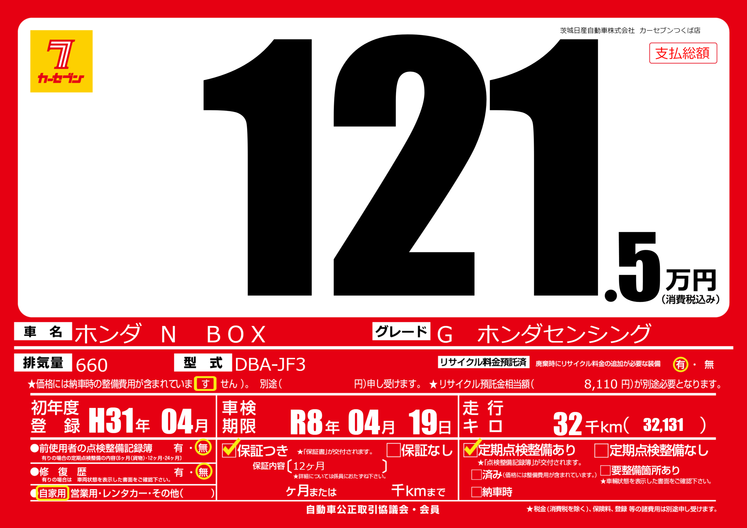 あり | 車検制限 | R8年04月19月 |