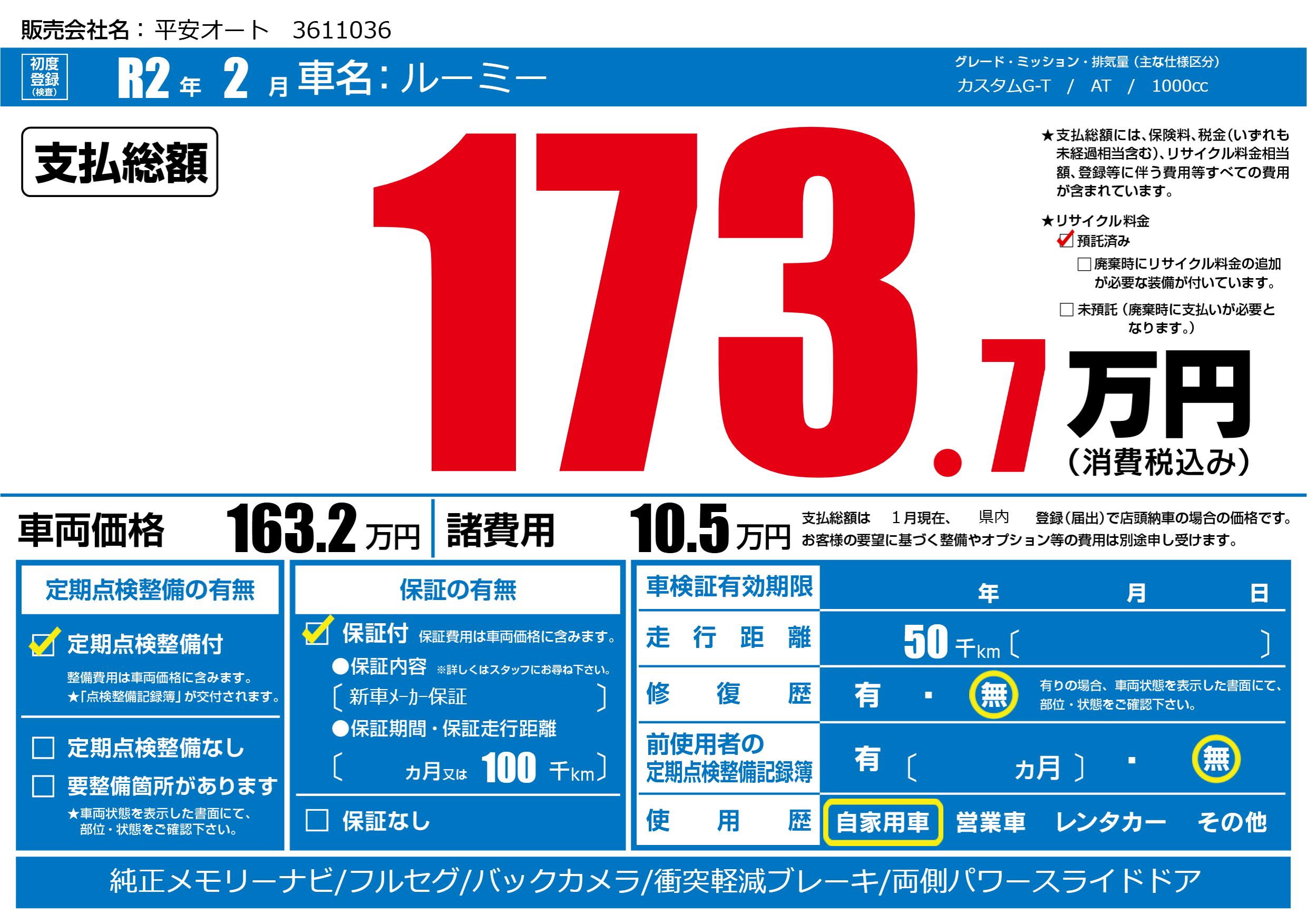 | 定期点検整備 | 定期点検整備あり | ||