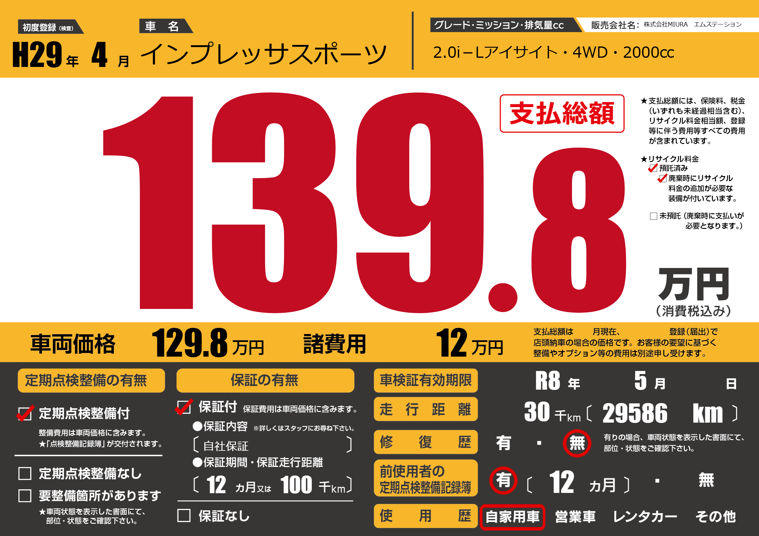 | 車検制限 | R8年 5月 - 日 | ||