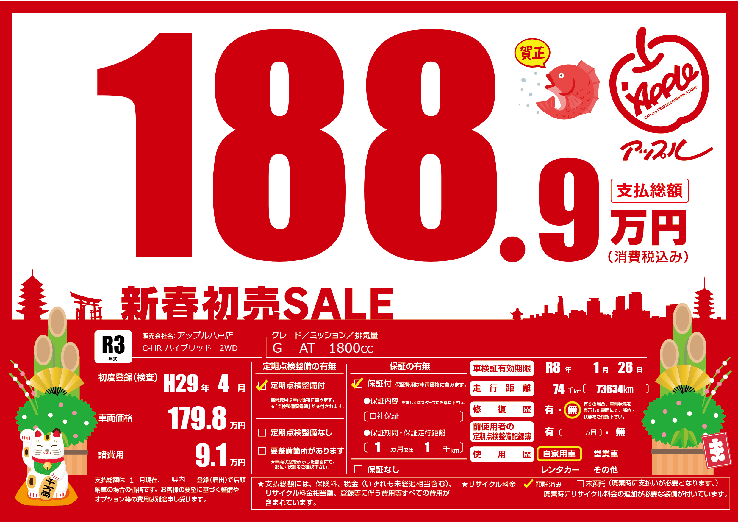 | 車名 | C-HR ハイブリッド 2WD | グレード ミッション 排気量 |