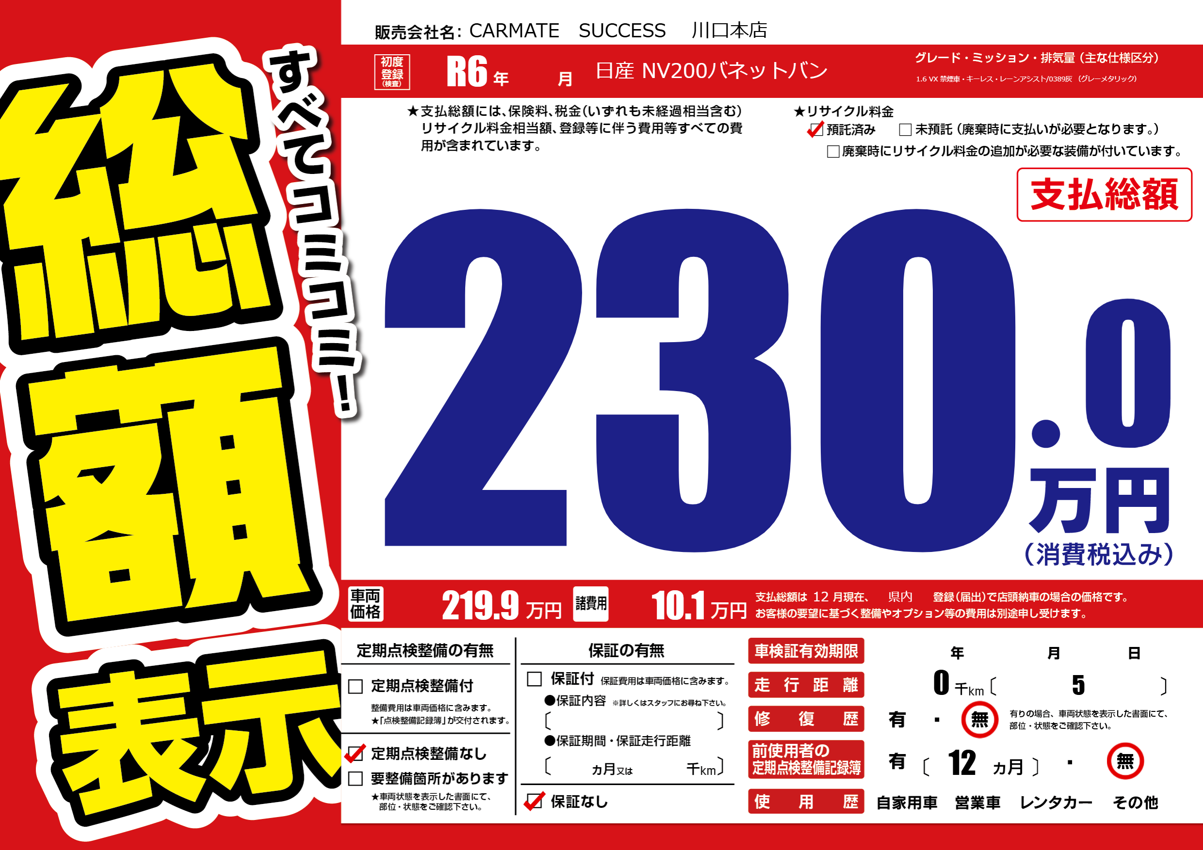 | 車検制限 | - 年 - 月 - 日 | ||