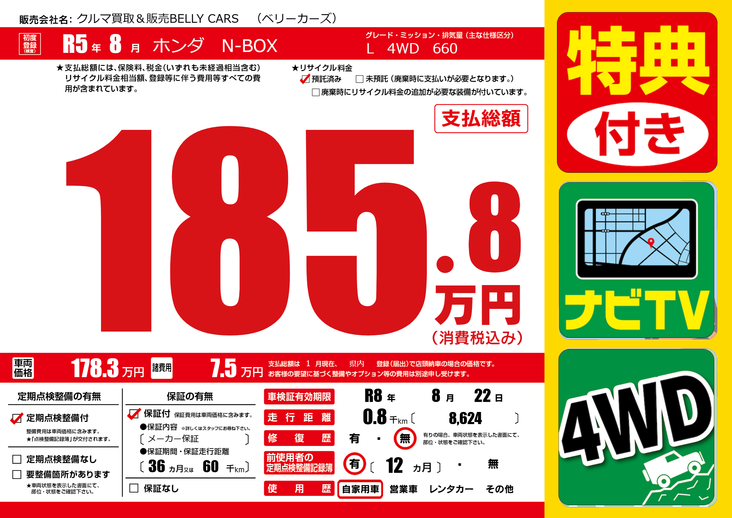 | 走行キロ | - | 初年度登録 | R5年8月 |