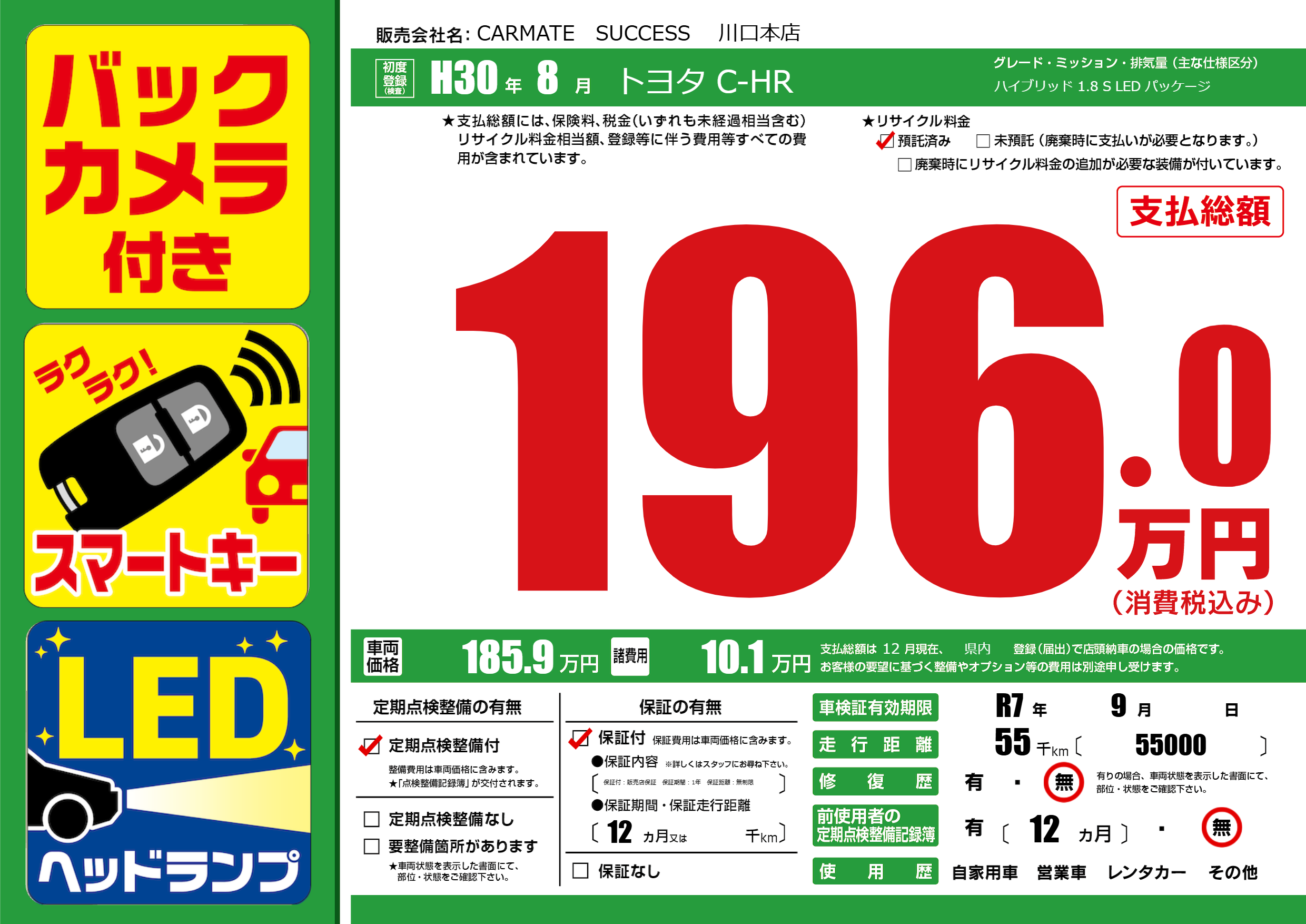 | 走行キロ | 5.5万km | 初年度登録 | H30年8月 |