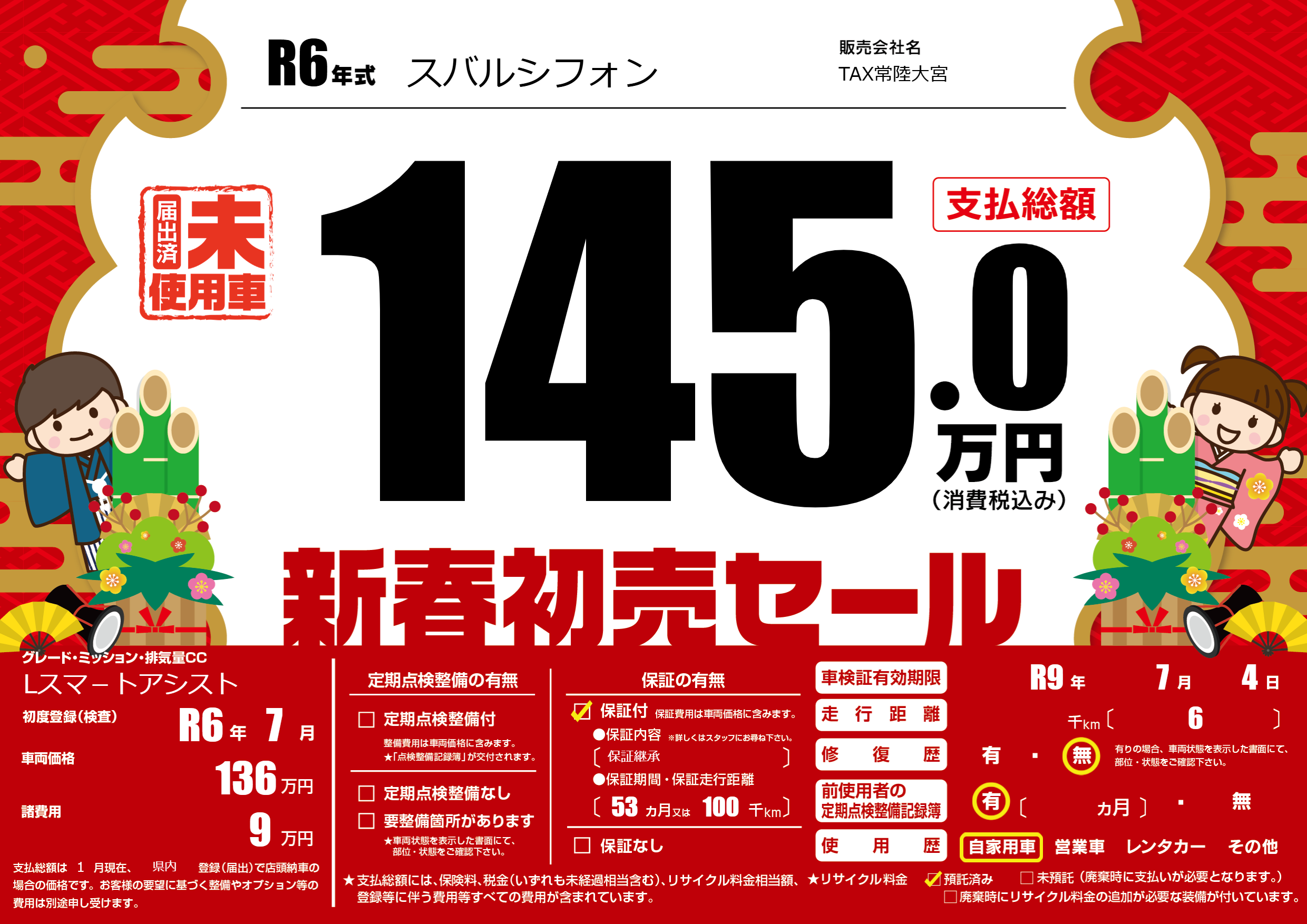 保証付き 保証内容(保証継承) 53ヶ月または(100)千kmまで |