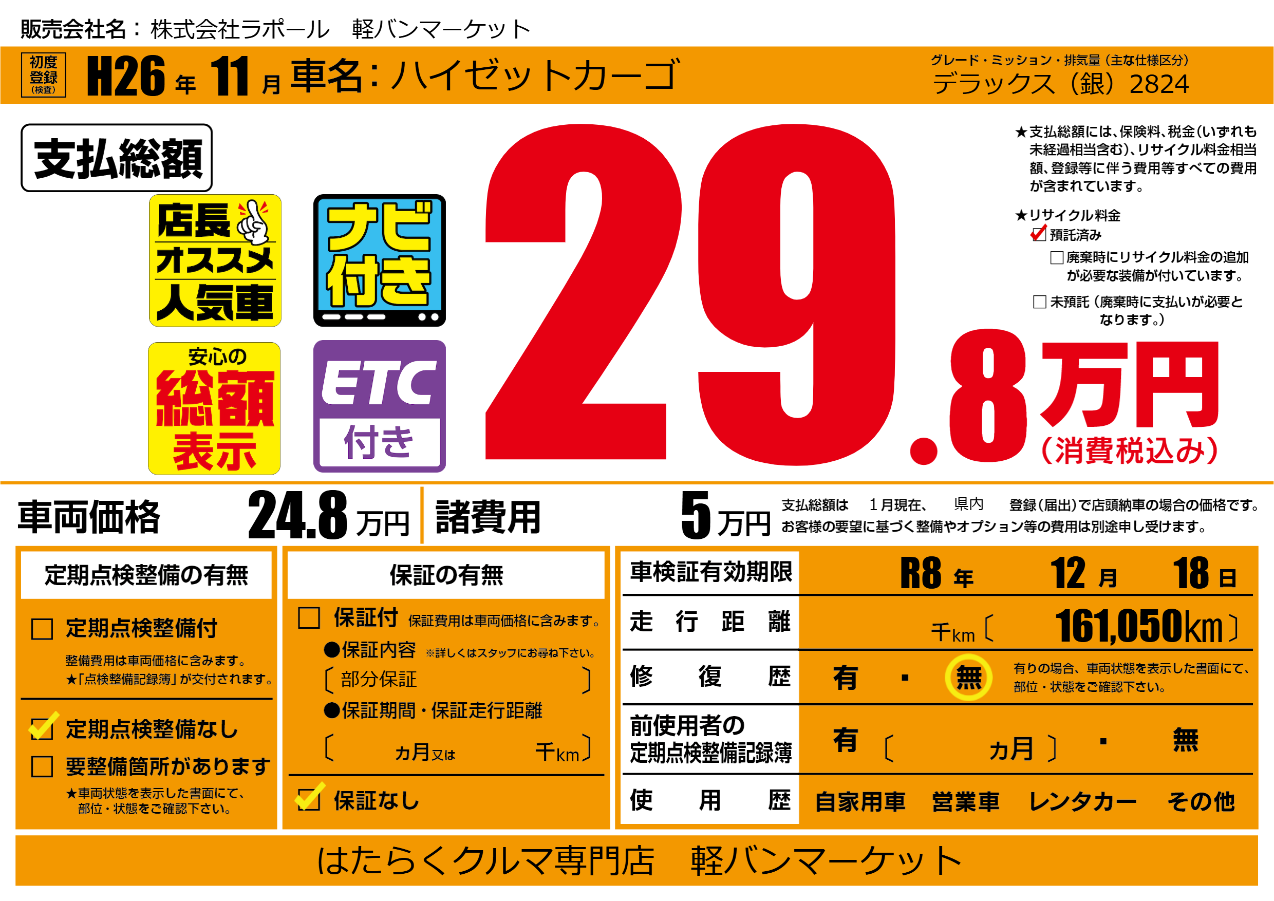なし | 車検制限 | R8年12月18月 |