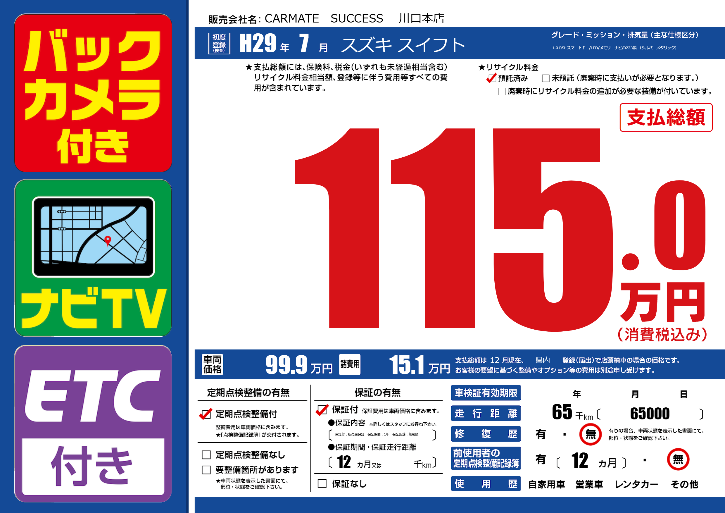 定期点検整備 | 定期点検整備あり |