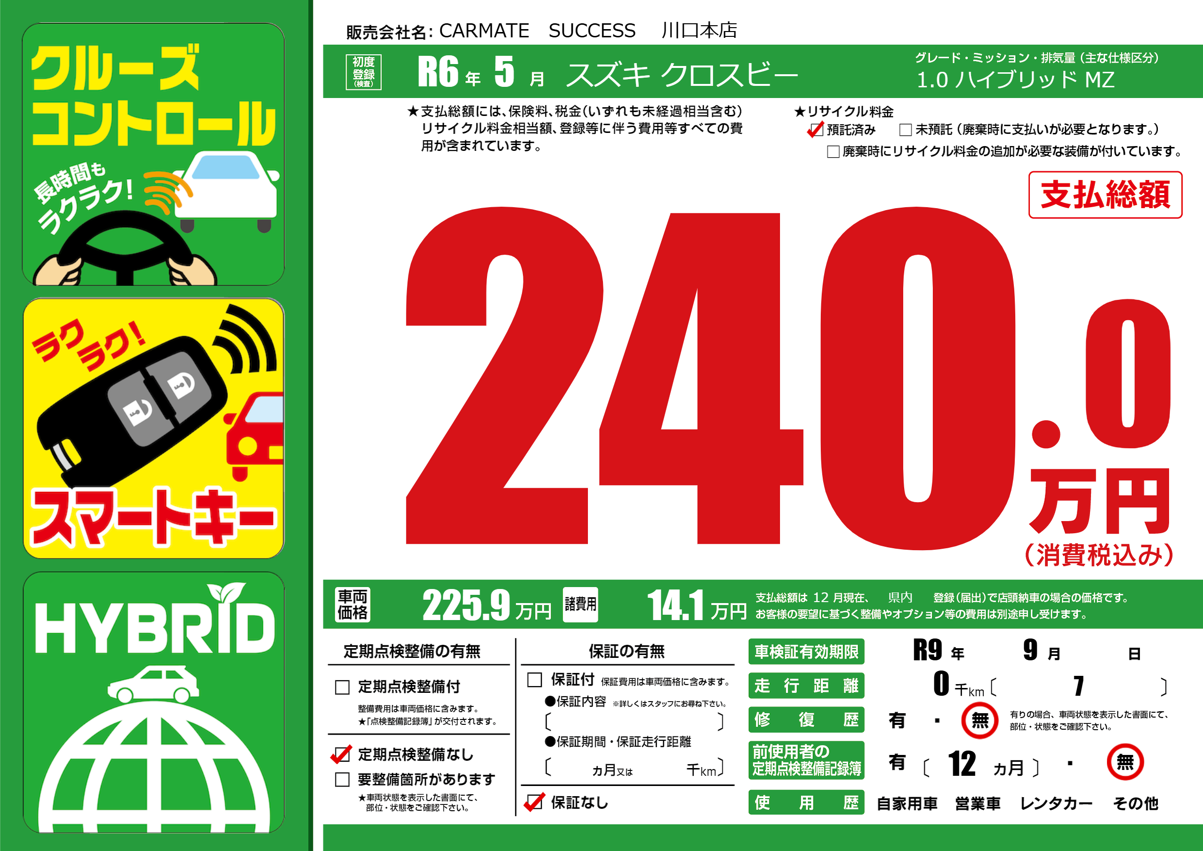 なし | 車検制限 | R9年9月---月 |