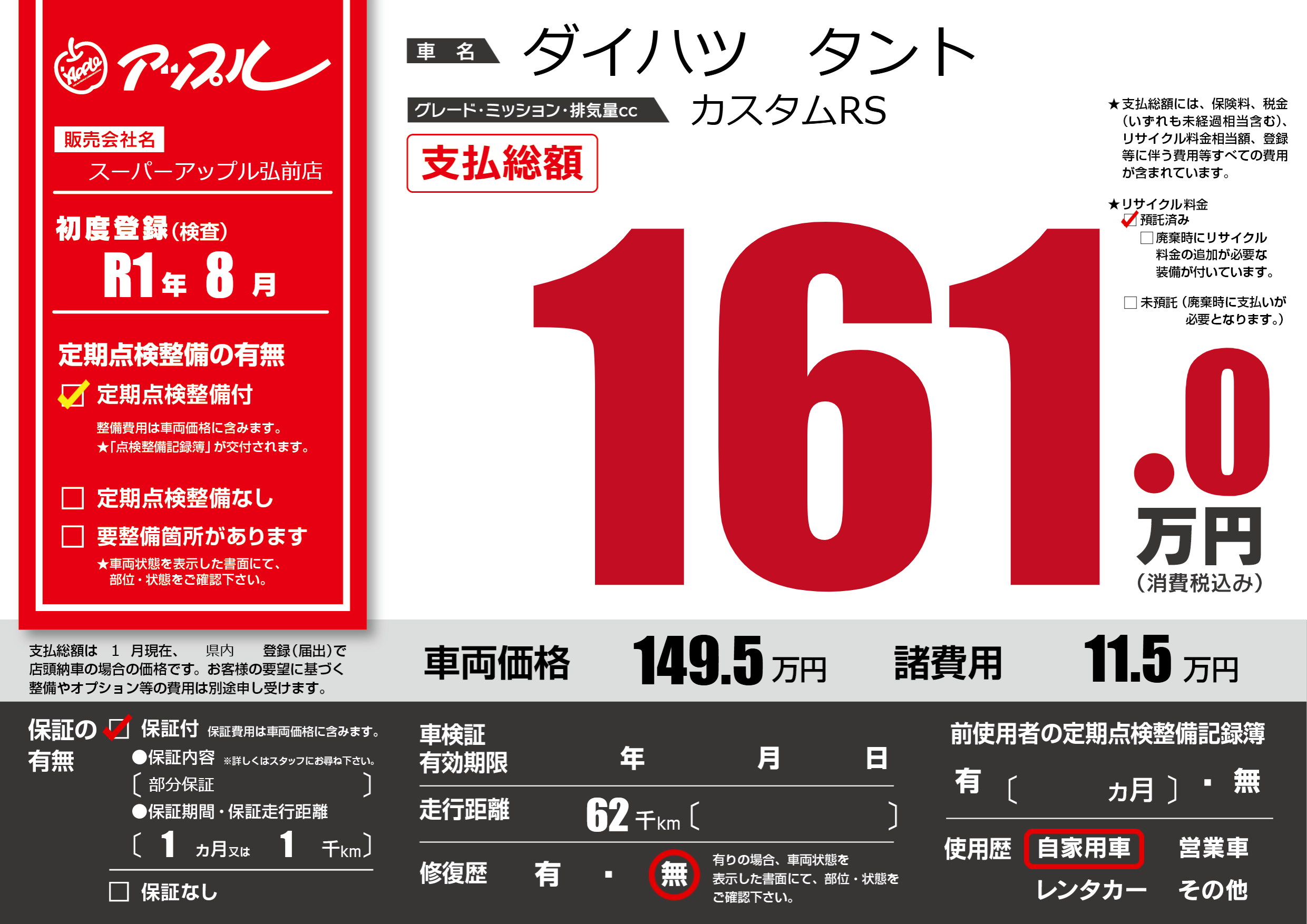 | 定期点検整備 | 定期点検整備あり | ||