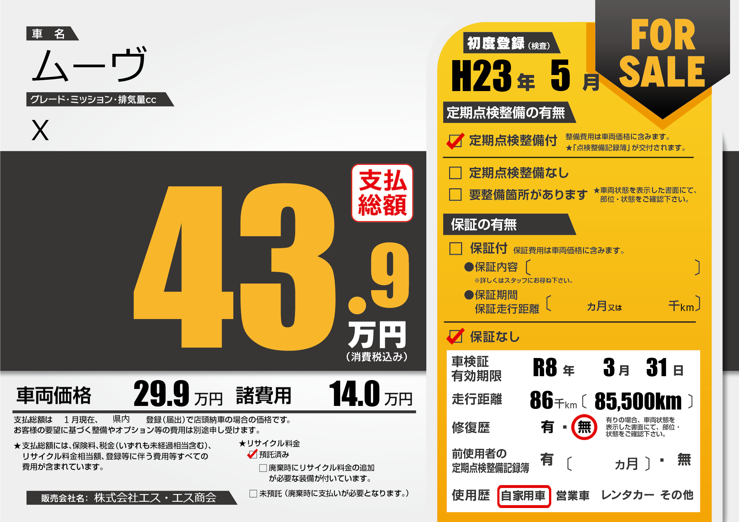 車検制限 R8年 3月 31日