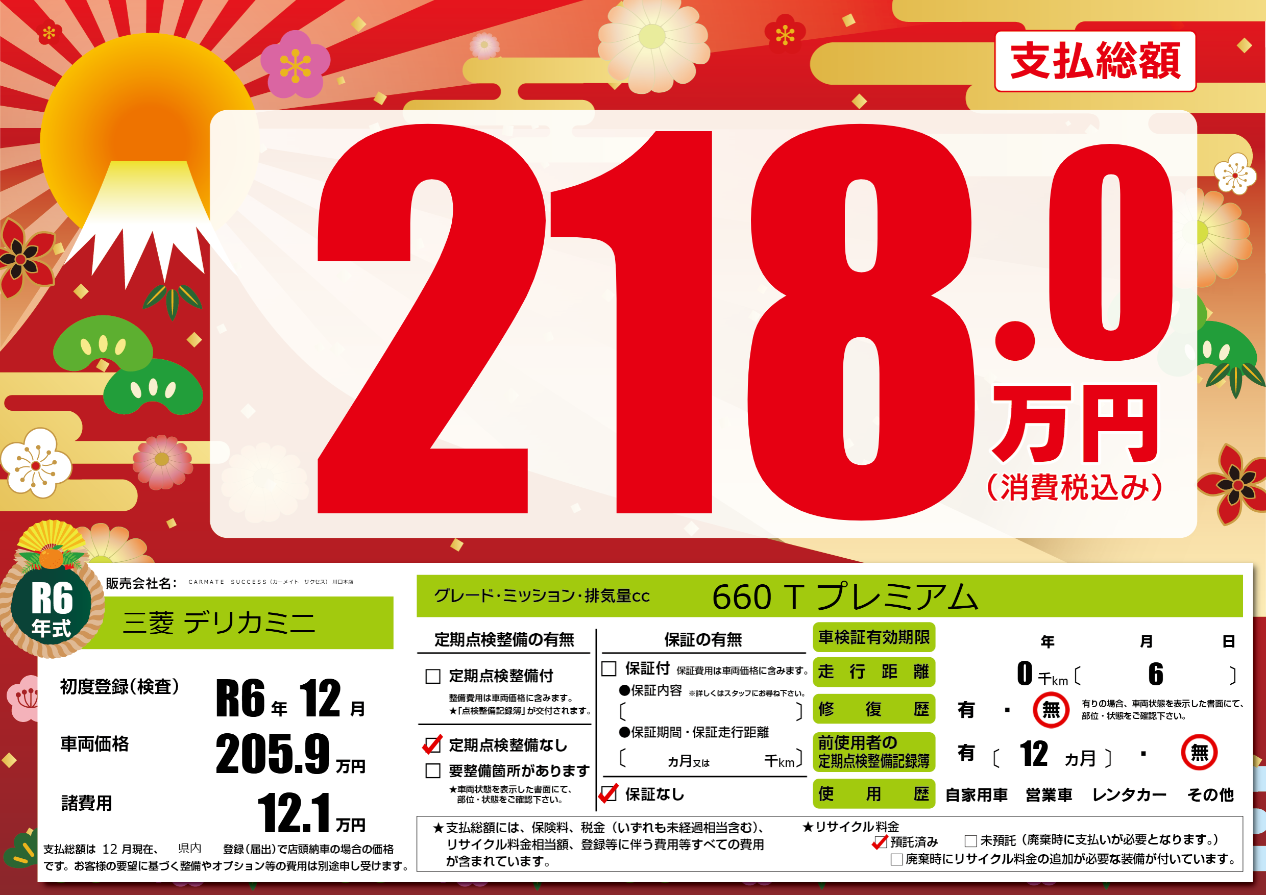 | 車名 | 三菱 デリカミニ | グレード ミッション 排気量 |