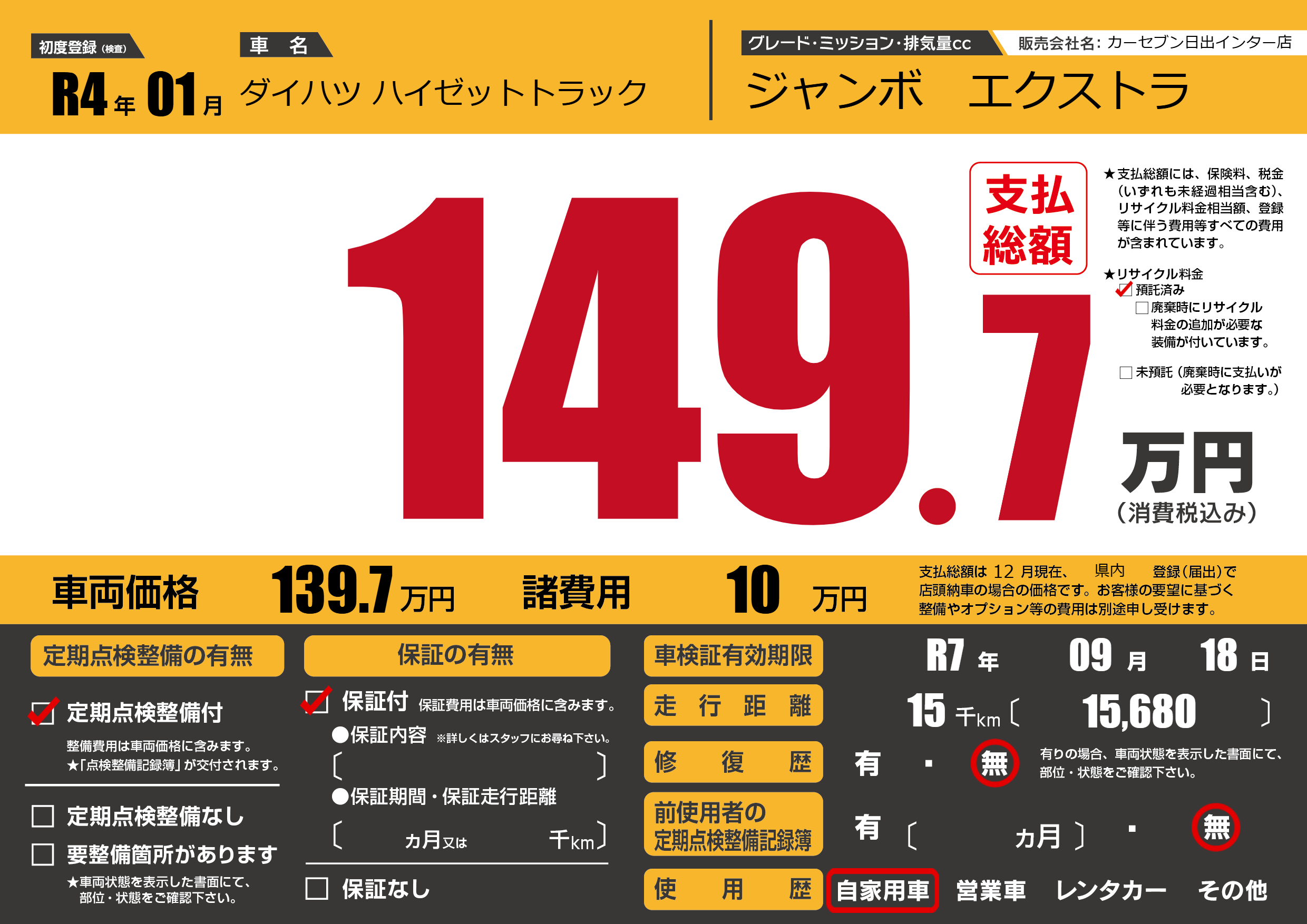 なし | 車検制限 | R7年09月18月 |