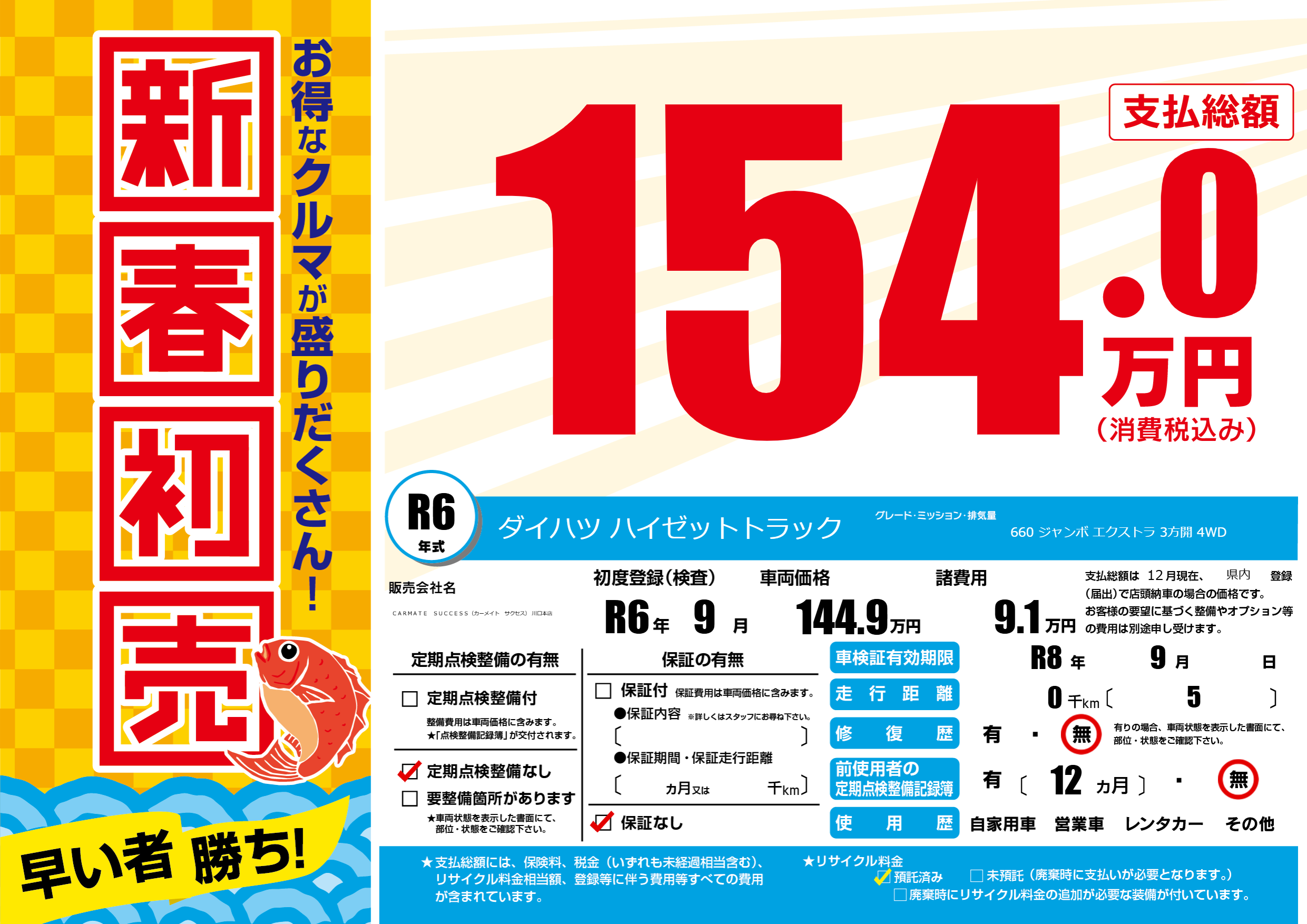 | 走行キロ | - | 初年度登録 | R6年9月 |