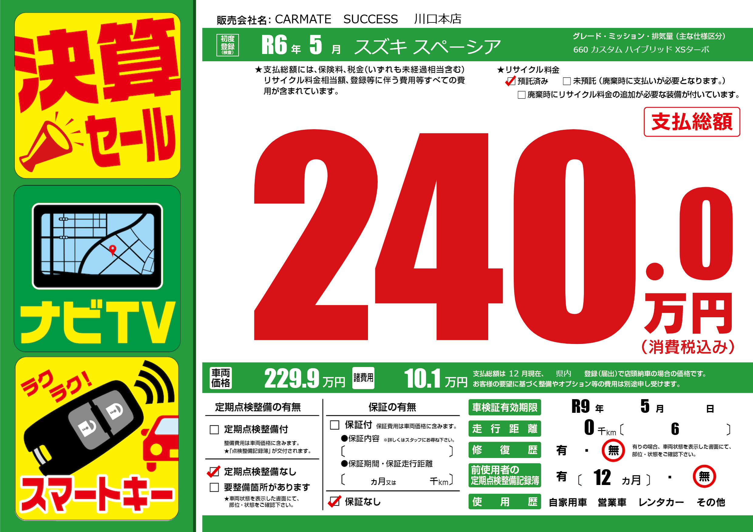 | 走行キロ | - | 初年度登録 | R6年5月 |
