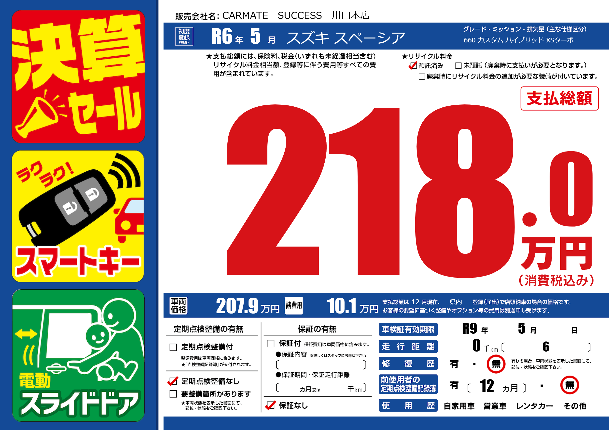 | 走行キロ | - | 初年度登録 | R6年5月 |