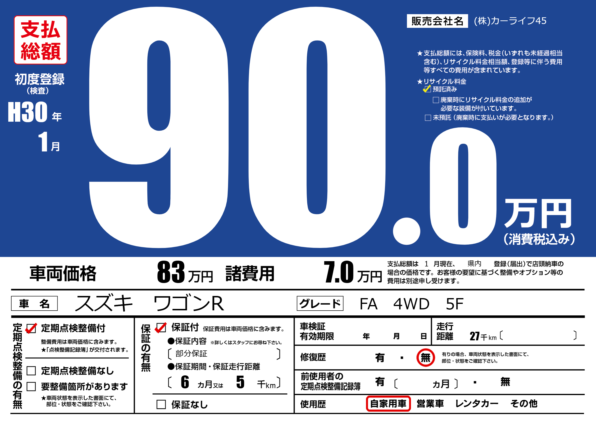 | 車名 | スズキ ワゴンR | グレード ミッション 排気量 |