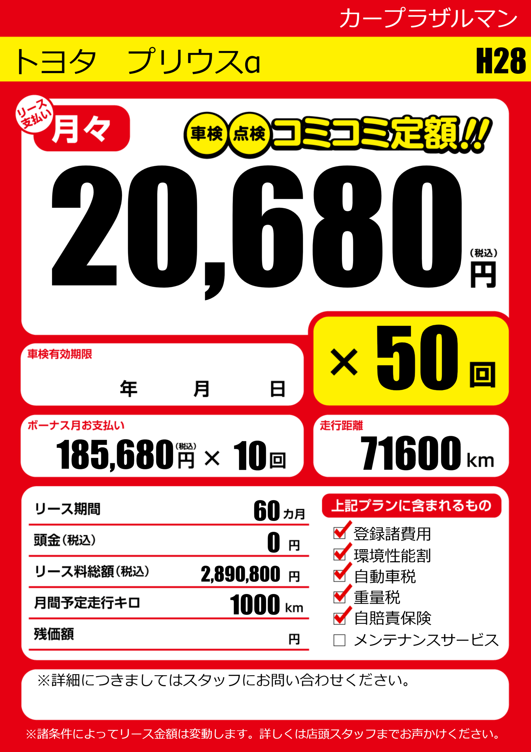 | 車名 | トヨタ プリウスα | グレード ミッション 排気量 |