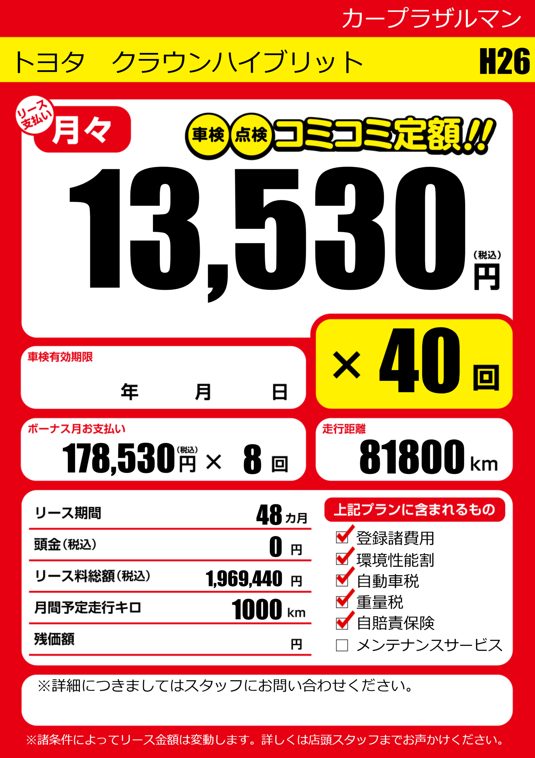 | 車検制限 | - 年 - 月 - 日 | ||