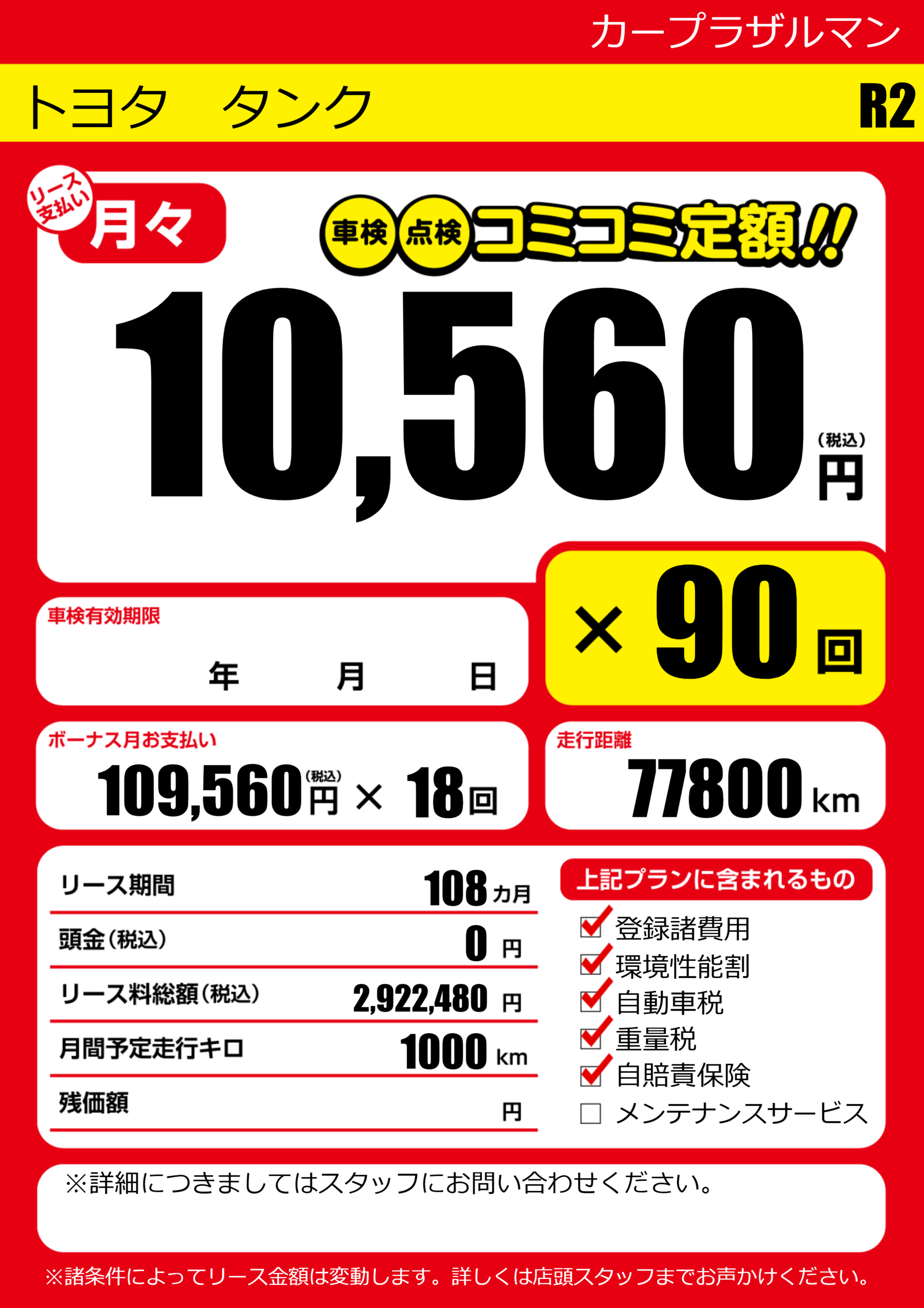 | 車検制限 | - 年 - 月 - 日 | ||