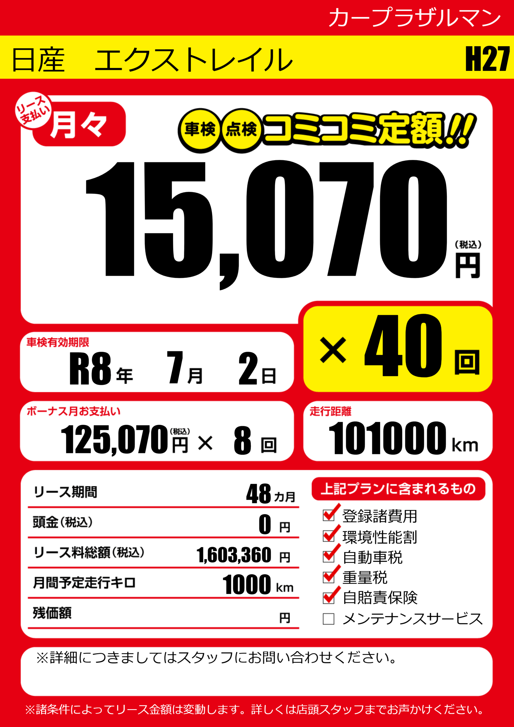 | 車名 | 日産 エクストレイル | グレード ミッション 排気量 |