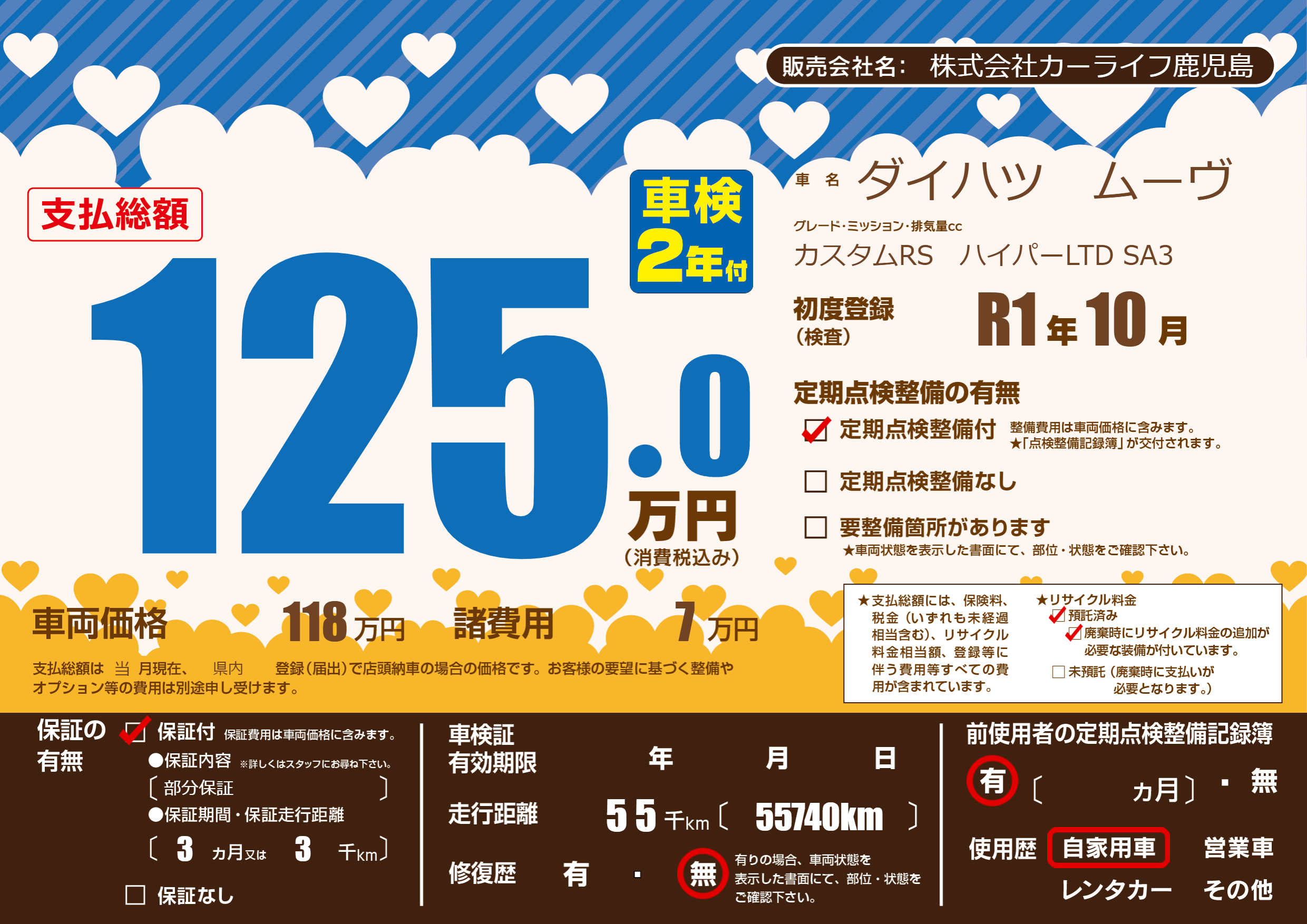 | 定期点検整備 | 定期点検整備あり | ||
