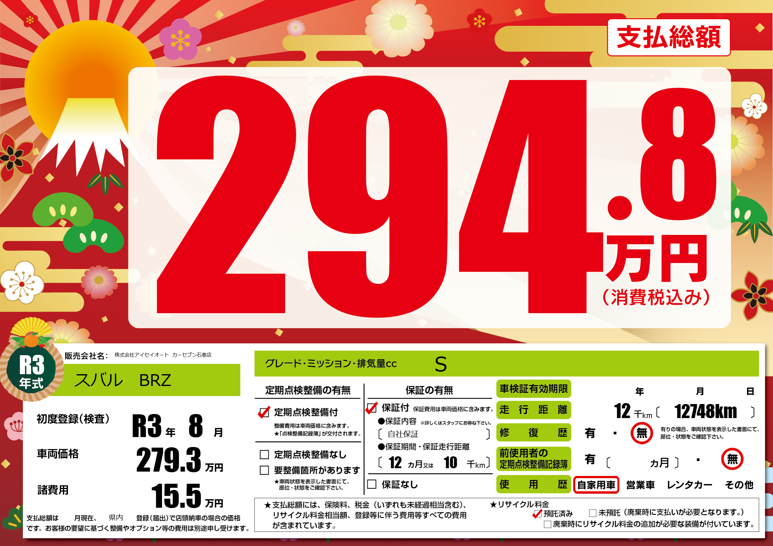 | 車名 | スバル BRZ | グレード ミッション 排気量 |