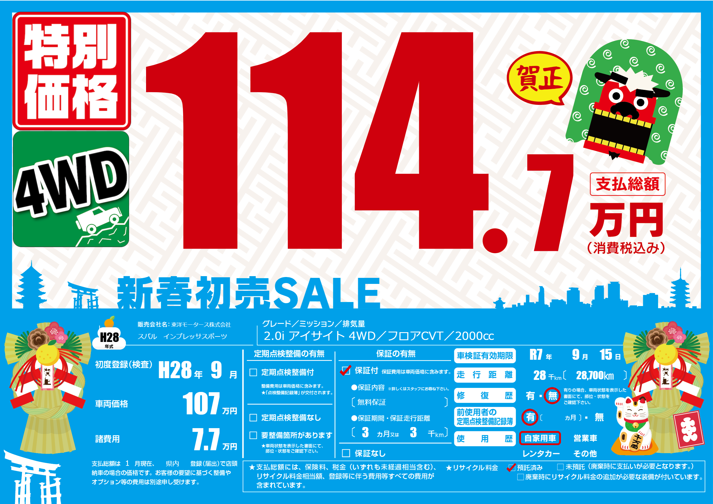 | 車検制限 | R7年 9月 15日 | ||